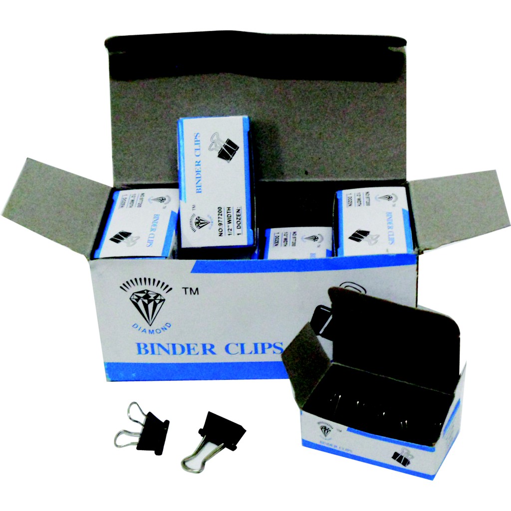 1 dozen Binder Clips 15mm - 1/2 inches - 12 pcs in a box - Sold per box - Pull Back Clip