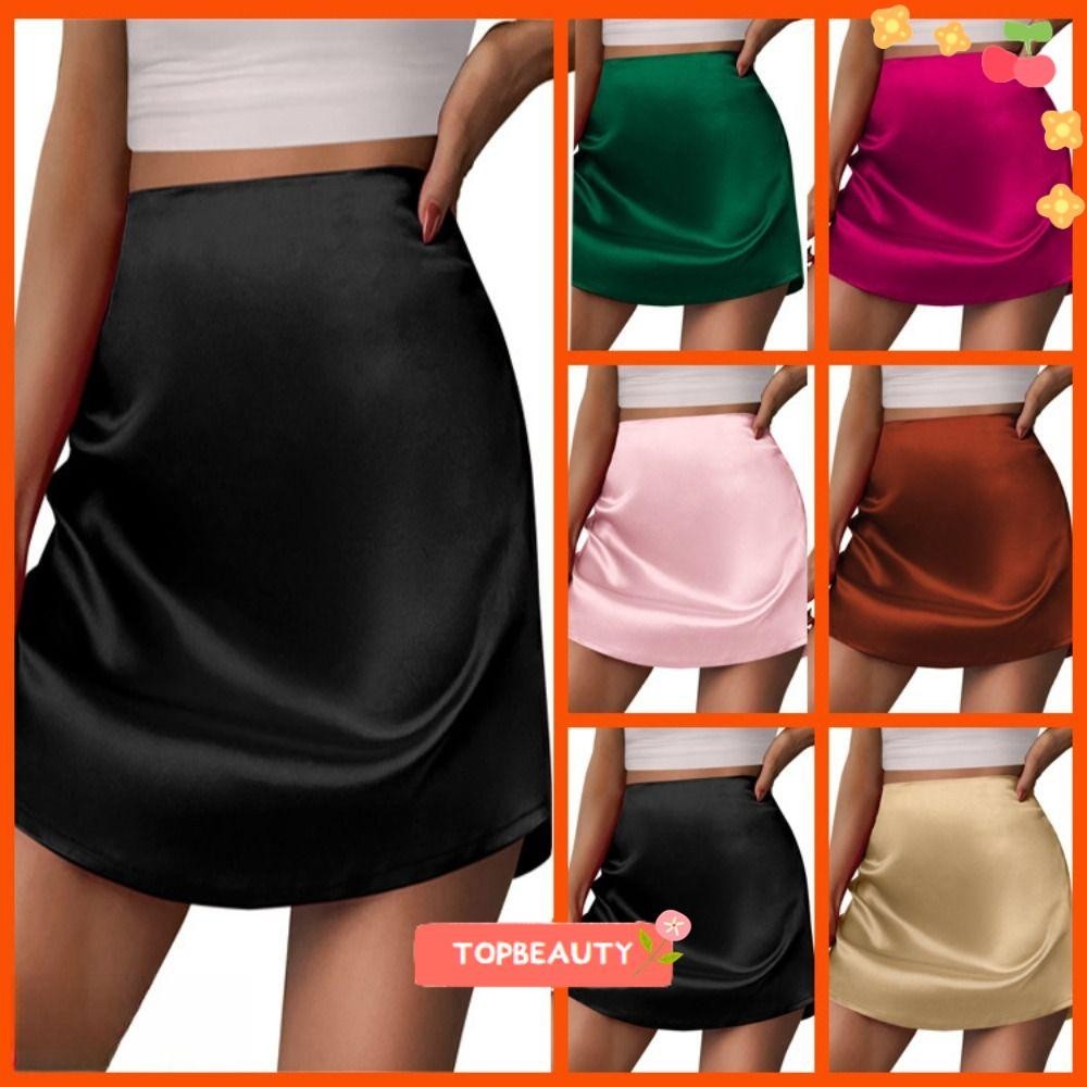 BEAUTY Mini Skirt, Stain Silk A-Line Short Skirt, Fashion Sexy Stretchy Satin Silk Skirt Women