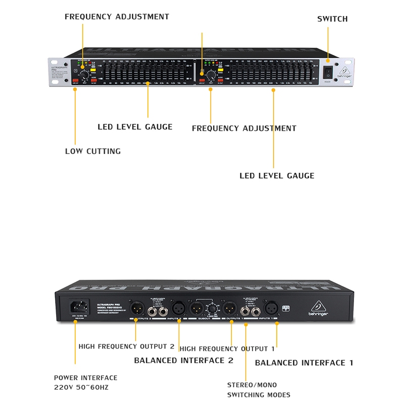 BEHRINGER FBQ1502HD Equalizer, Dual 15-Band Dual Channel Stereo Graphic Equalizer