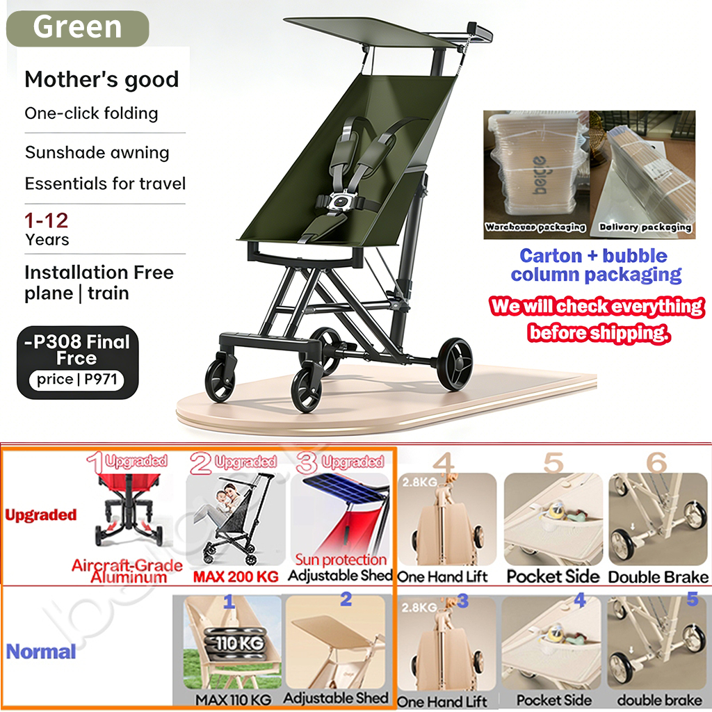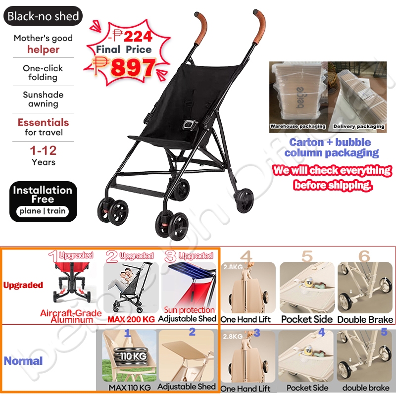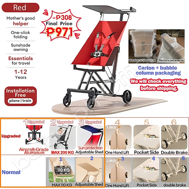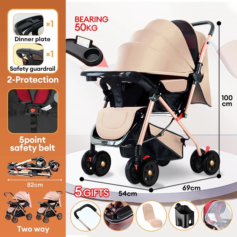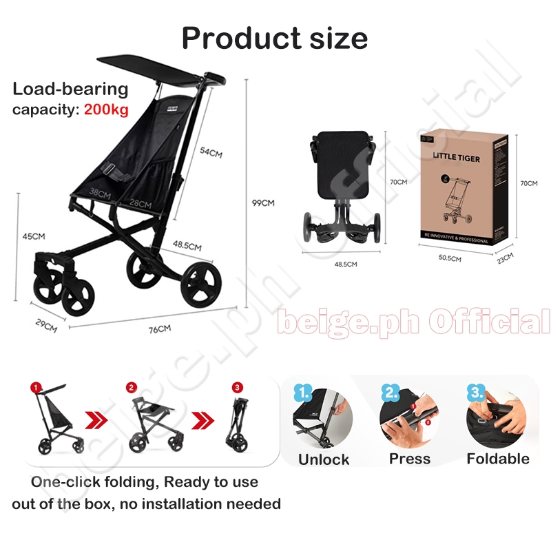 BEIGE Stroller For Baby Pocket Lightweight One-click Folding 2.8kg Baby Stroller For Toddler Awning