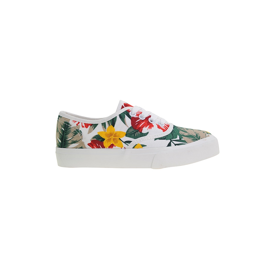 BENCH/ Floral Lace Up Sneakers - White