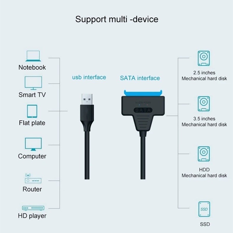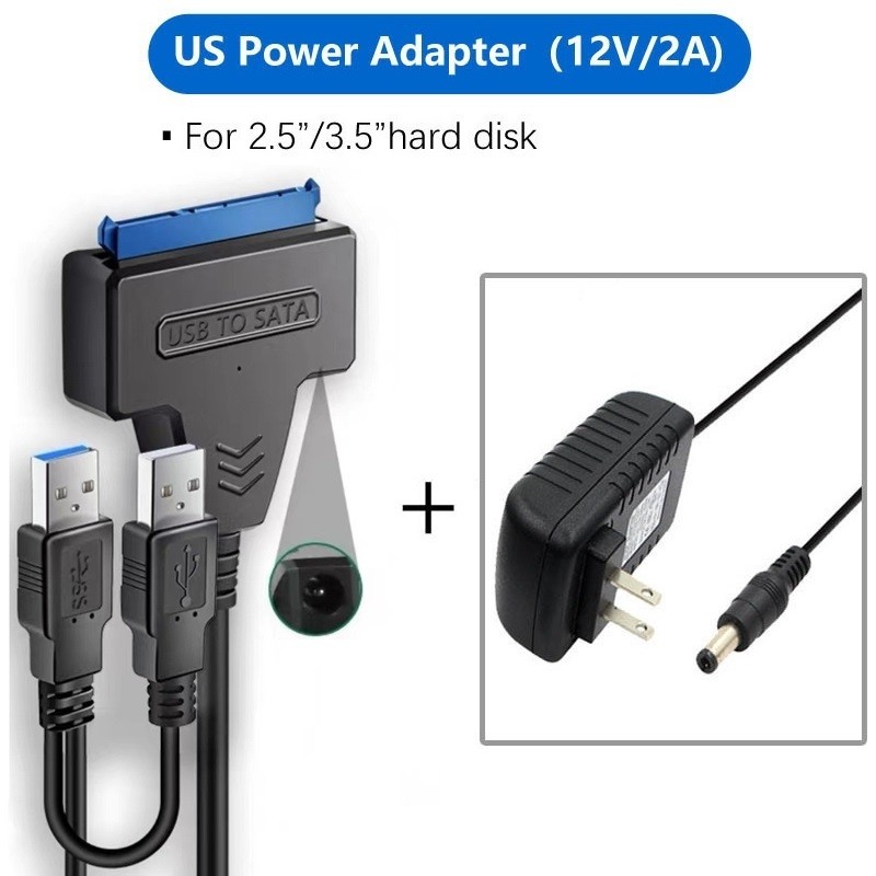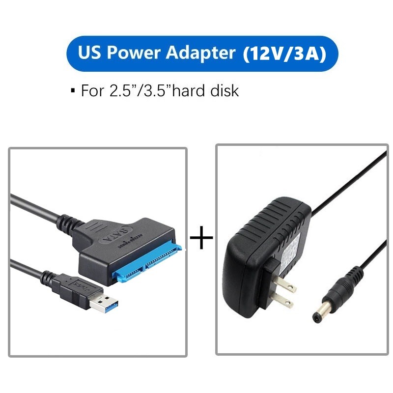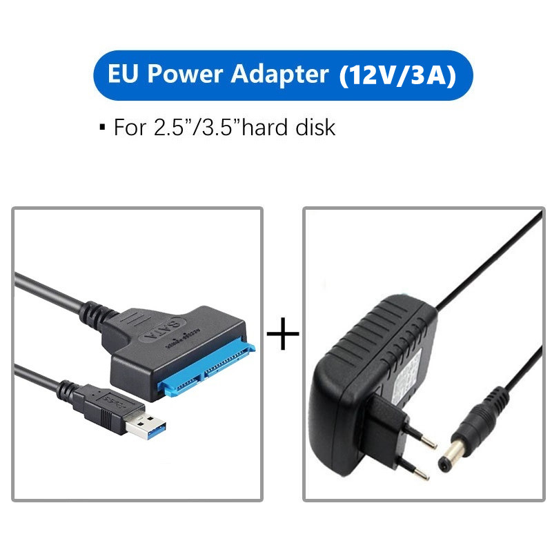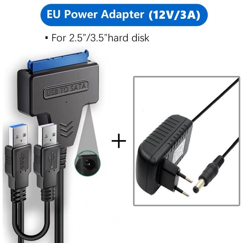 BENOSEM USB SATA Cable Sata To USB 3.0 Adapter UP To 6Gbps Support 2.5 3.5 Inch SSD HDD External Hard Drive 22 Pin Sata III With DC 12V/3A Power adapter EU US Plug