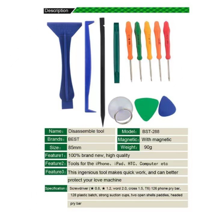 BEST BST-288 Multifunction 17 In 1 Opening Tools Set Complete Tool for Lcd Ts Opening