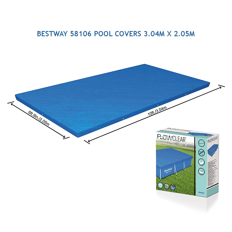 BESTWAY 58106 Swimming Pool Cover Flowclear Pro Rectangular Above Ground Swimming Pool Cover Blue