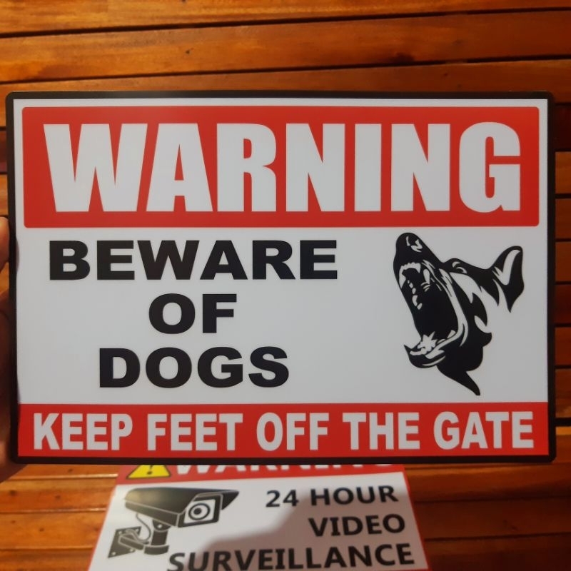BEWARE OF DOGS KEEP FEET OFF THE GATE SIGN PVC TYPE OR PLASTIC LAMINATED