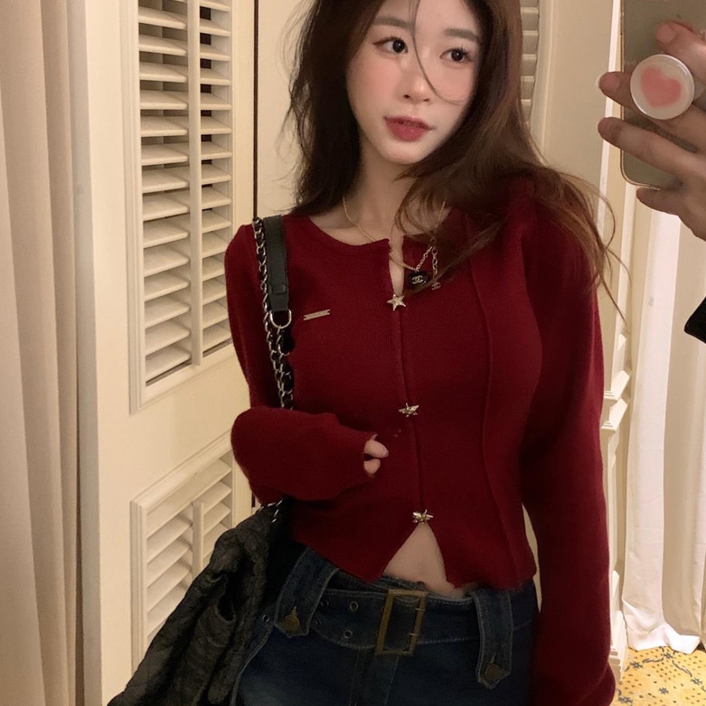 BH Korean women's autumn long sleeve sweater V-neck slim-fit short slit