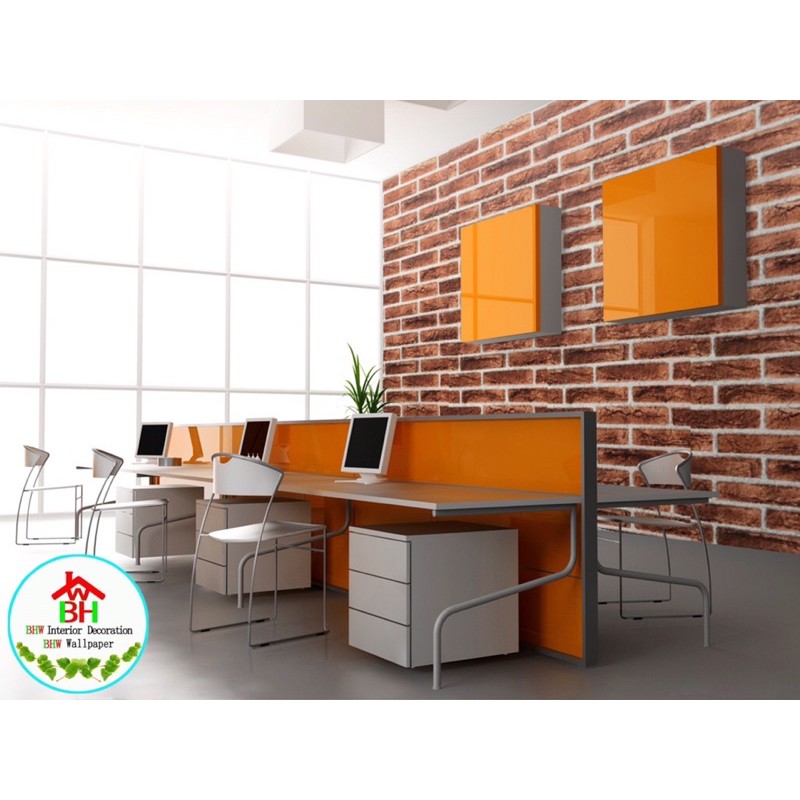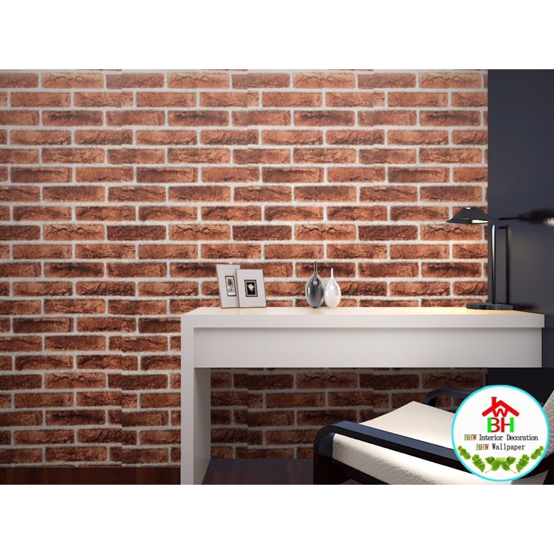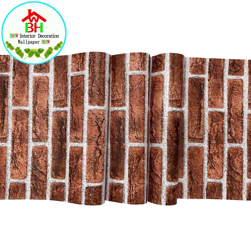 BHW Wallpaper Bricks Design Color Brown Self Adhesive PVC Waterproof Wall Paper Sticker V6