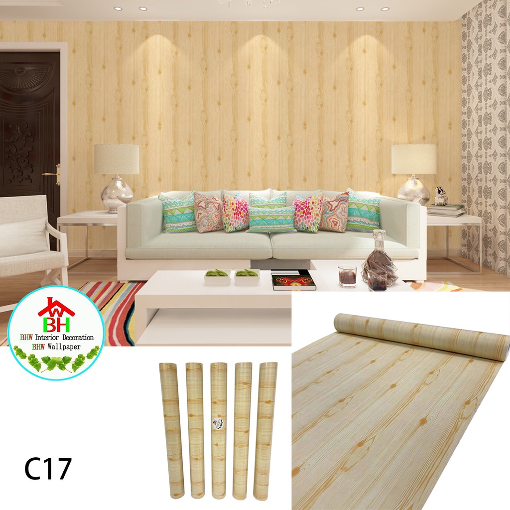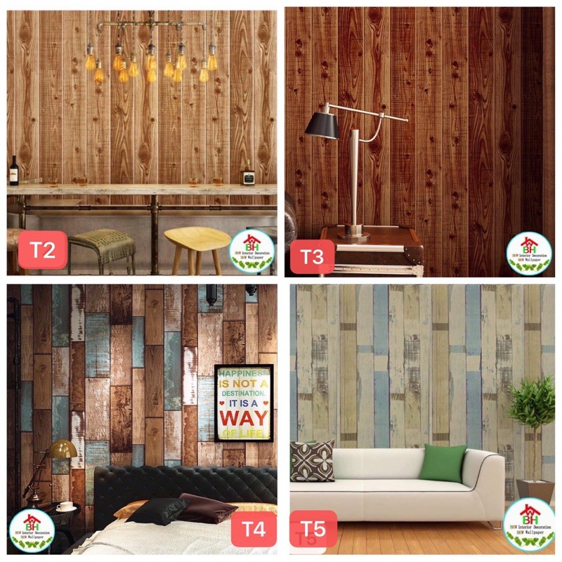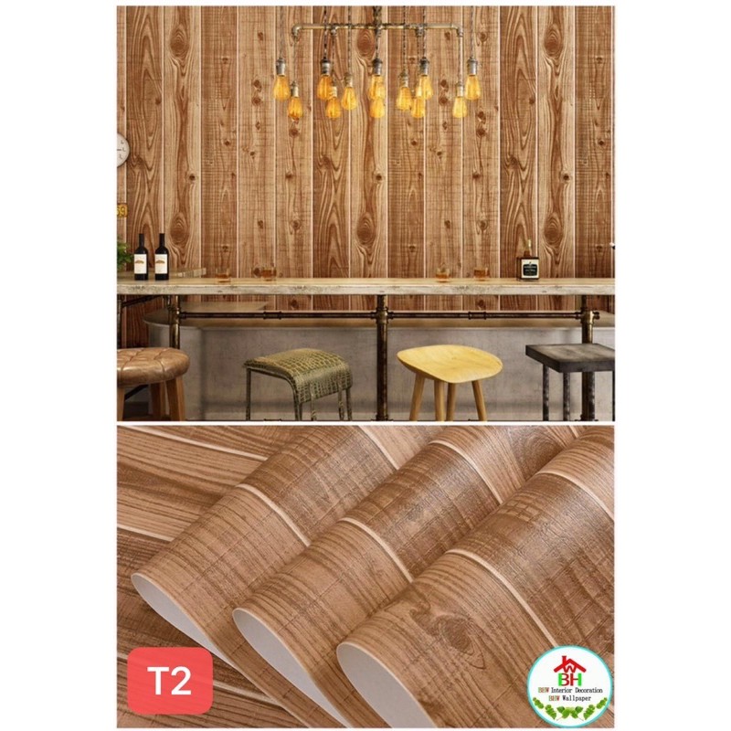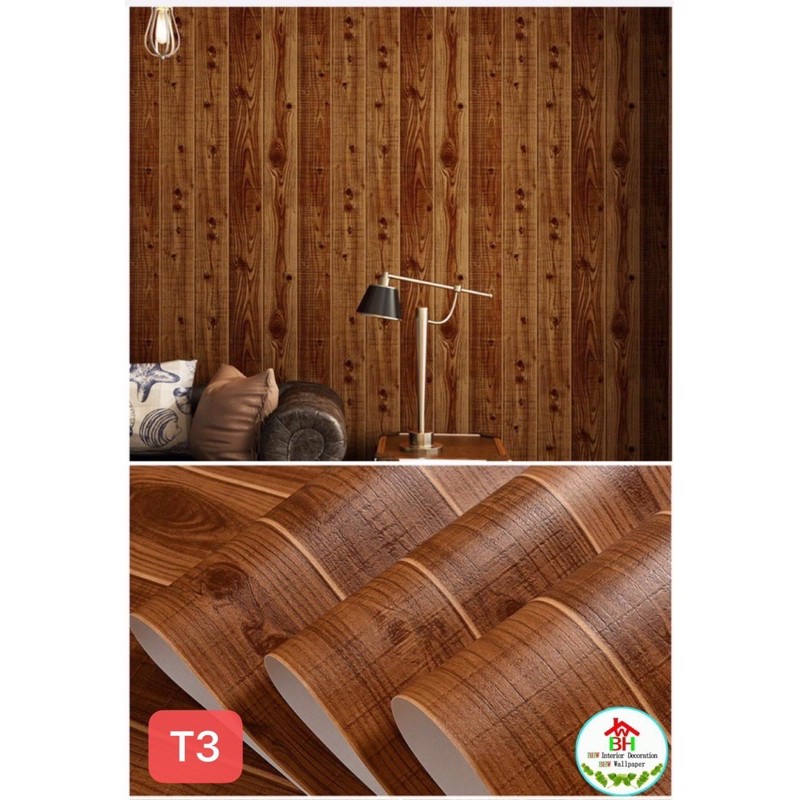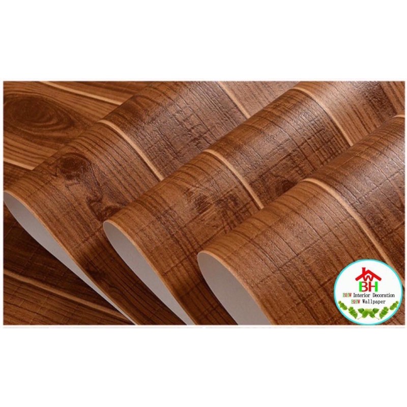 BHW Wallpaper Self-Adhesive Wood Grain Design PVC Waterproof Wall Sticker T4