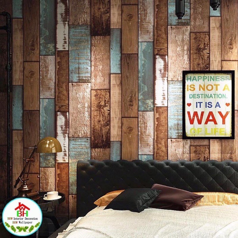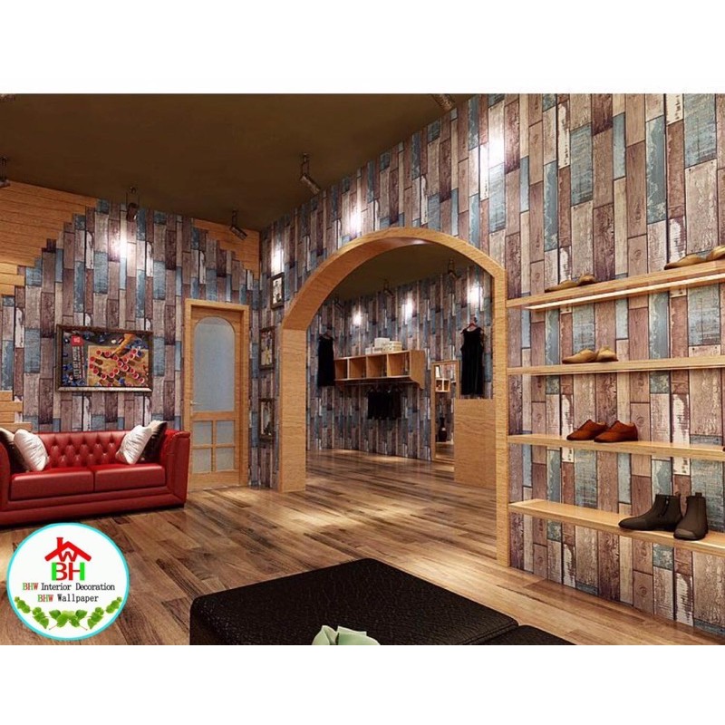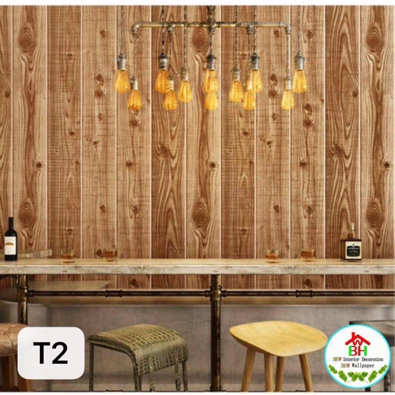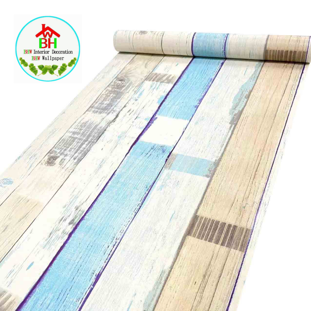 BHW Wallpaper Self-Adhesive Wood Grain Design PVC Waterproof Wall Sticker T4