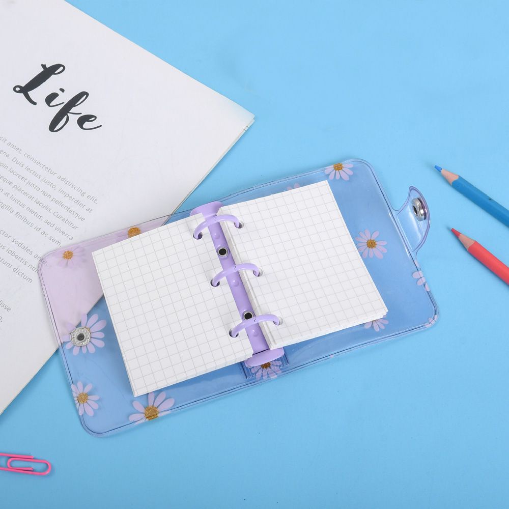 BIBLOUS Mini Notebook Cover File Folder Inner Pages Rings Binder Creative 3-hole Hand Account Diary Daisy Flower Stationery Diary Book Loose-leaf Refill
