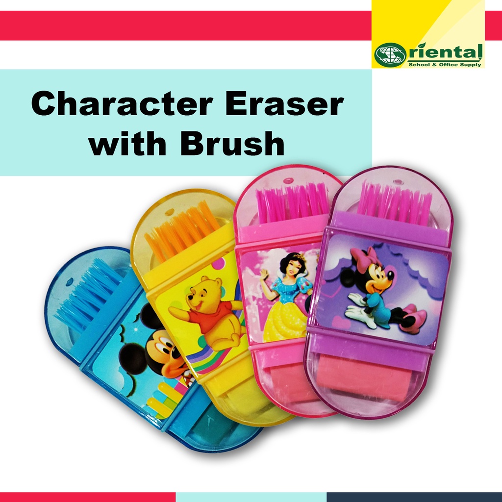 BIG Character Eraser with 2 hole Sharpeners and Brush - Colorful Cartoon Same Color Random Character