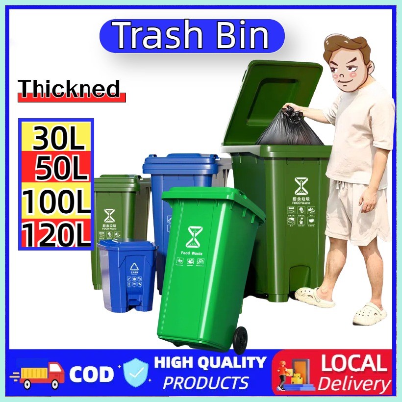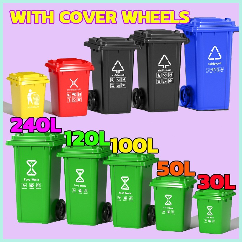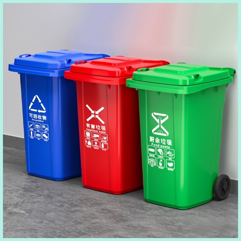BIG Trash Bin with Cover 30L-240L Large Garbage Bin with Wheel plastic recycle trash can Durable