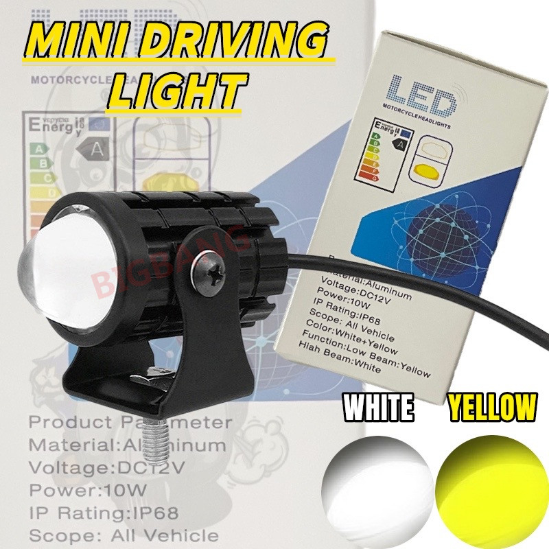 BIGBANG Motorcycle 10W Single Mini Driving Light MDL(White+Yellow)