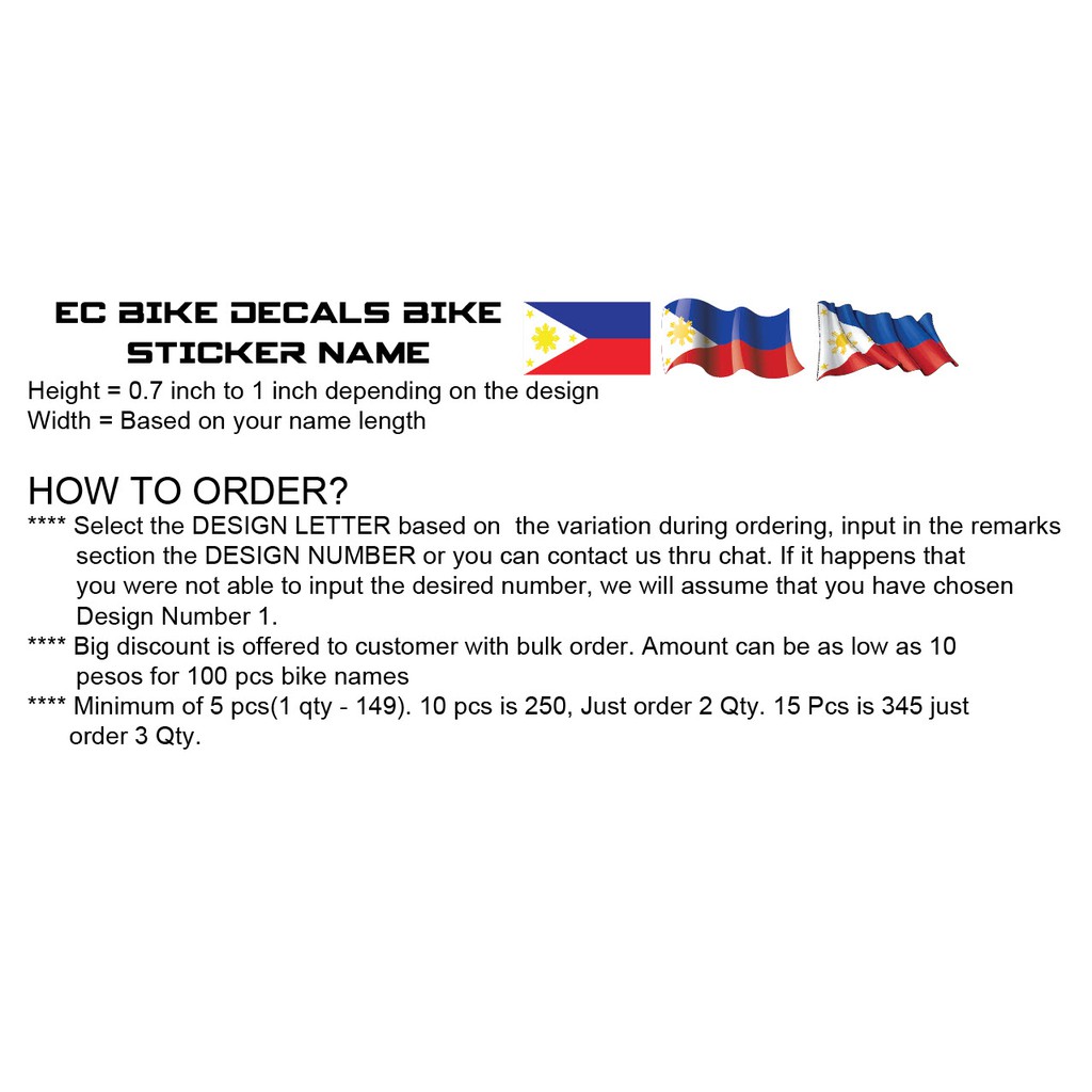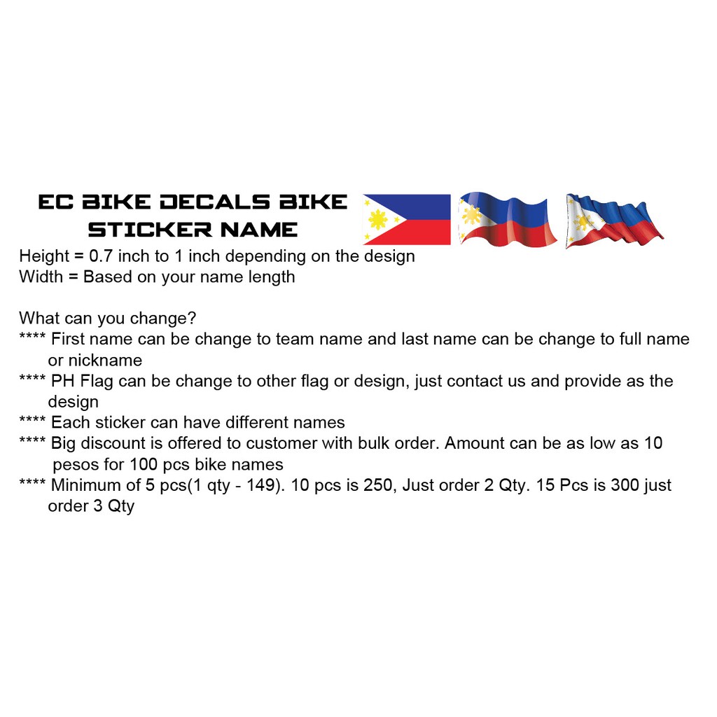 BIKE STICKER NAME PHILIPPINE FLAG - 5 PCS