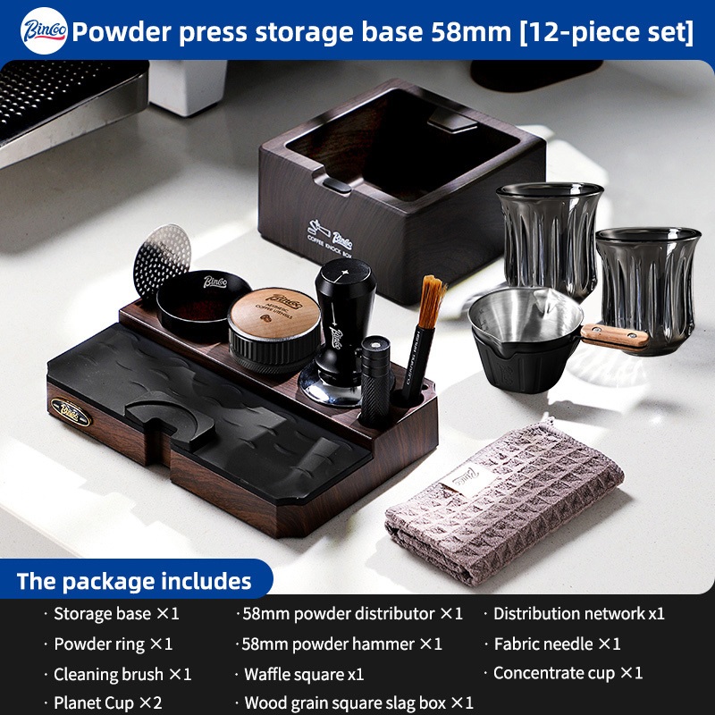 BINCOO Multi-function Powder Base Espresso Machine Powder Distributor Tamping Hammer Storage Set 51/58MM