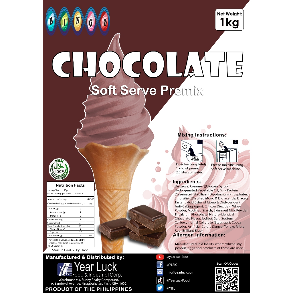 BINGO Soft Serve Powder Premix Choco 1kg (20's)