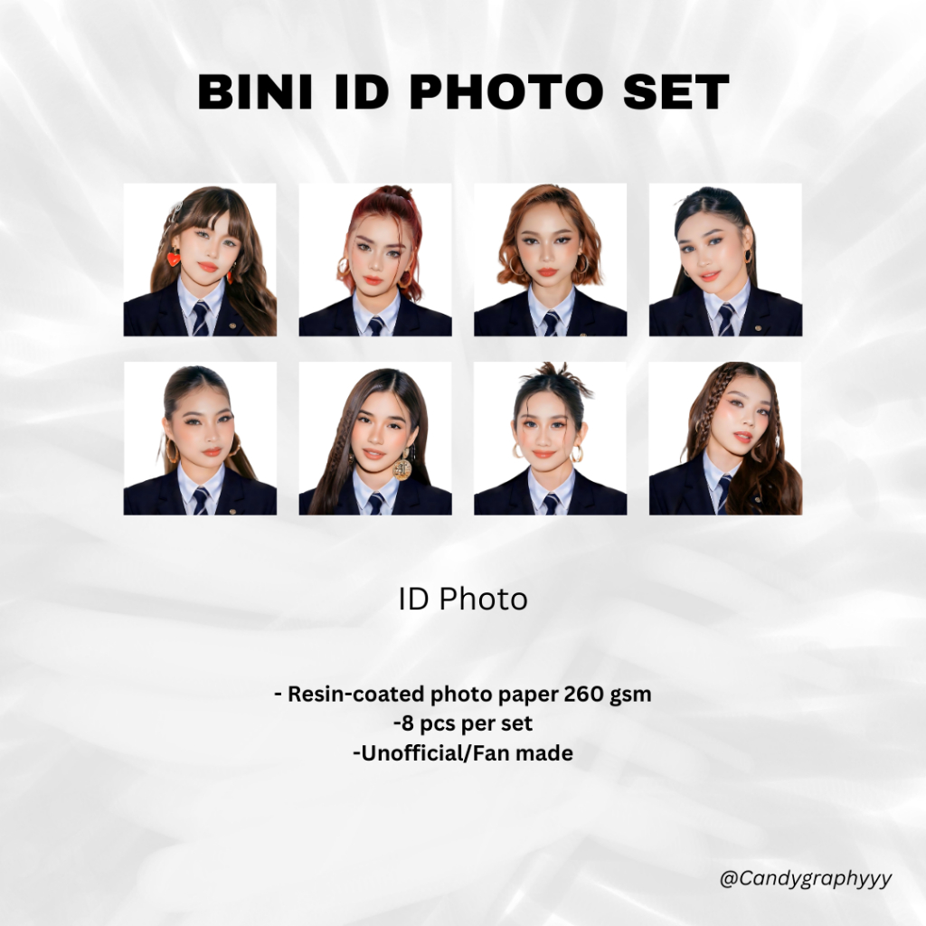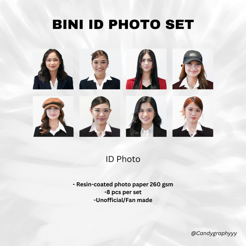 BINI ID Photo Set (Maloi, Colet, Sheena, Gwen, Stacey, Jhoanna, Mikha, Aiah) 1x1 and 2x2 Fanmade
