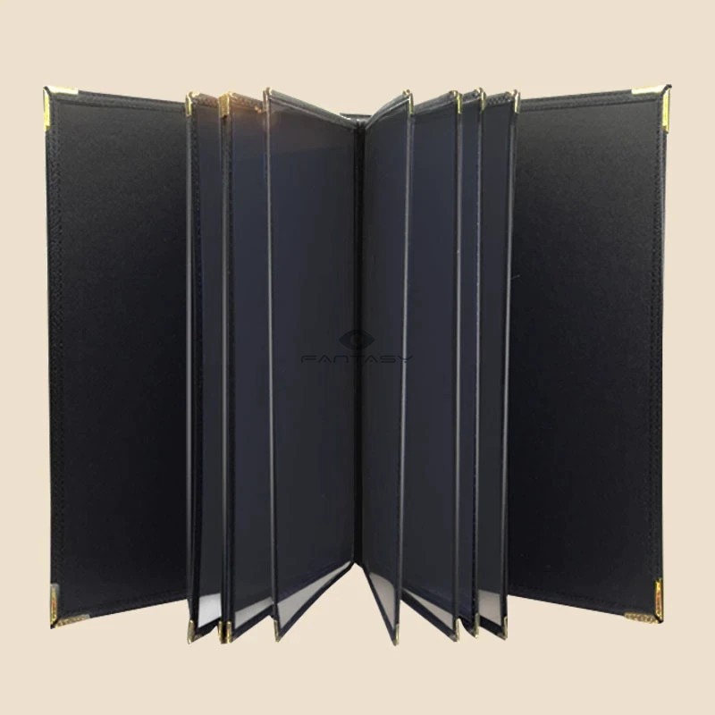 BLACK Leather Cover High-end Menu book Menu stand Menu holder Menu board A4 Size 4-6-8-10-12 Pages
