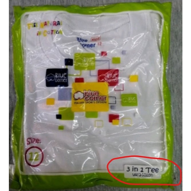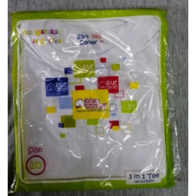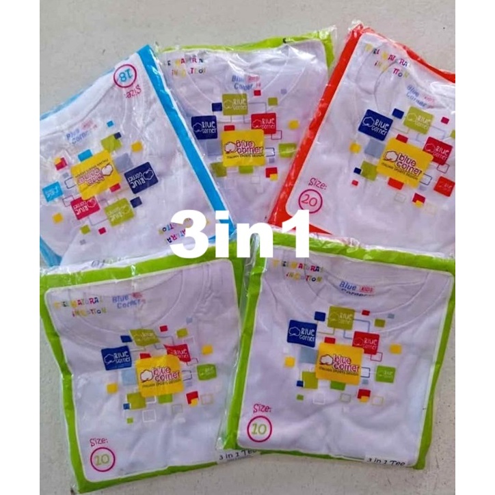 BLUE CORNER 3in1 Tshirt bluecorner White For KIDS TEENS (3pcs per pack) ORIGINAL HIGH QUALITY