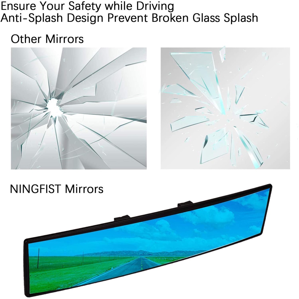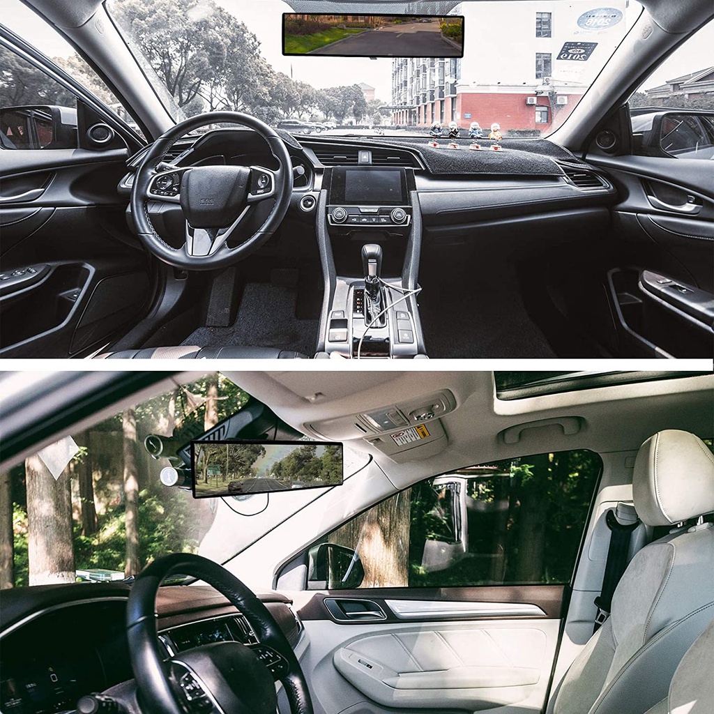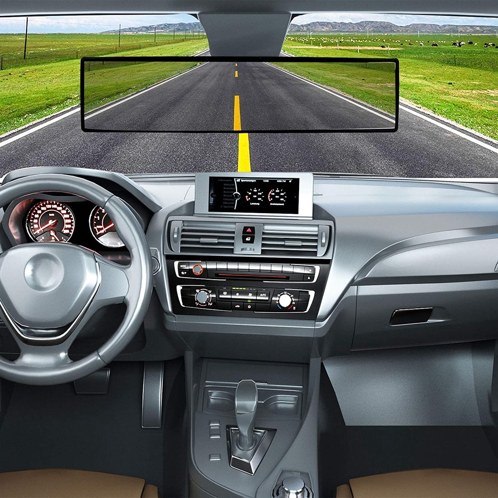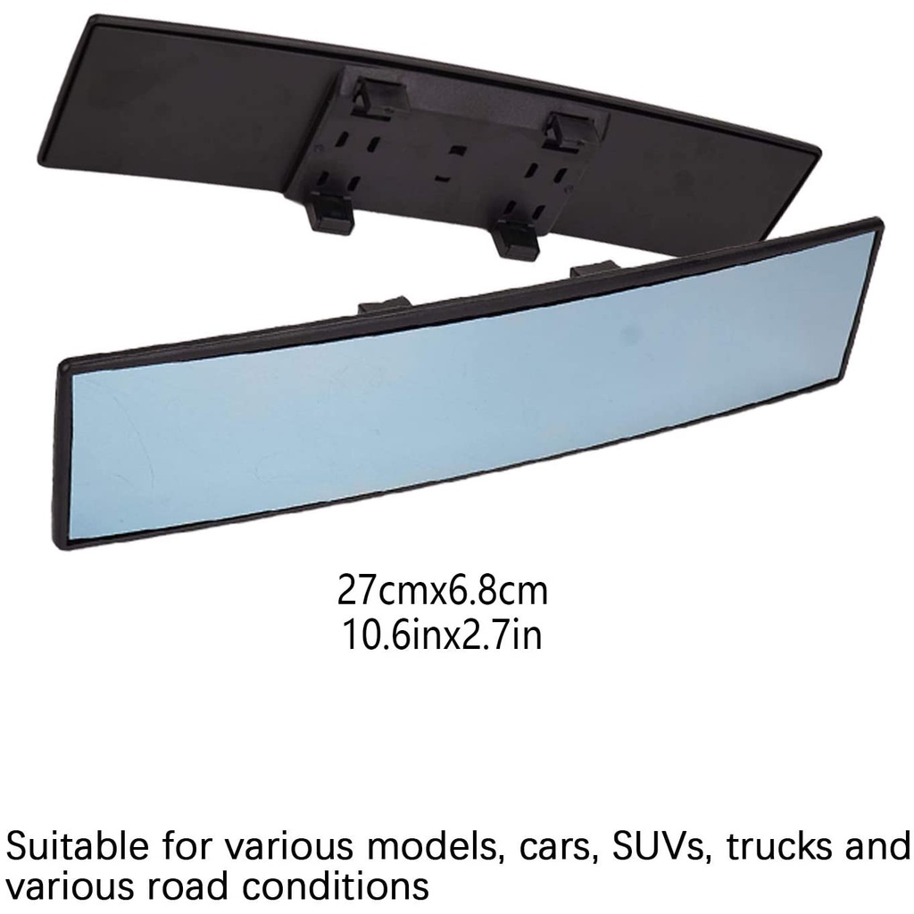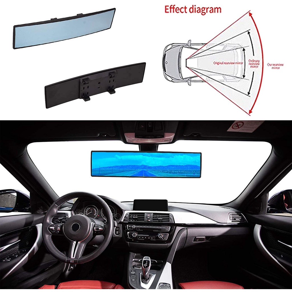 BLUE MIRROR Panoramic Rearview Mirror Car Wide angle Rear View Anti Glare Mirror Blindspot 30cm
