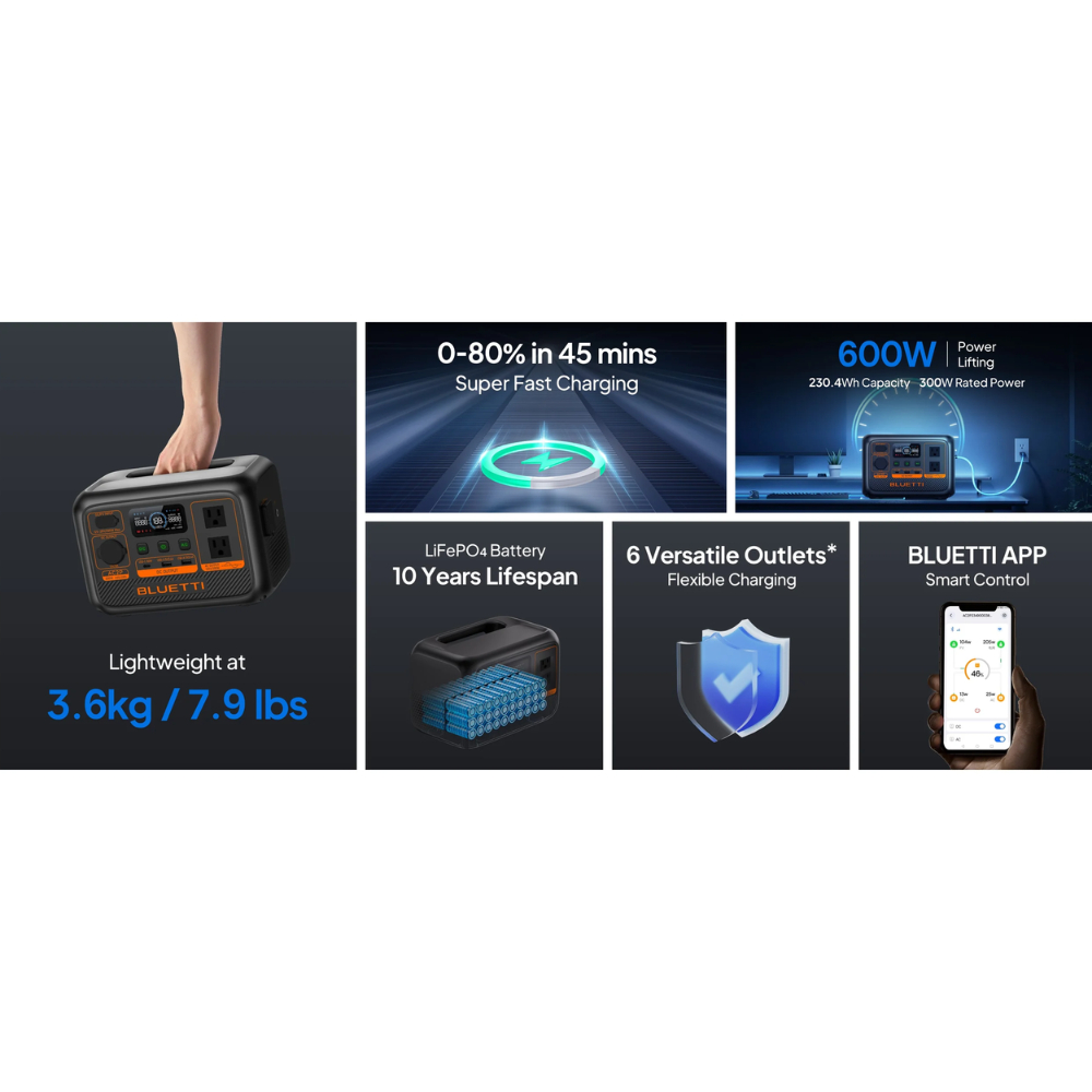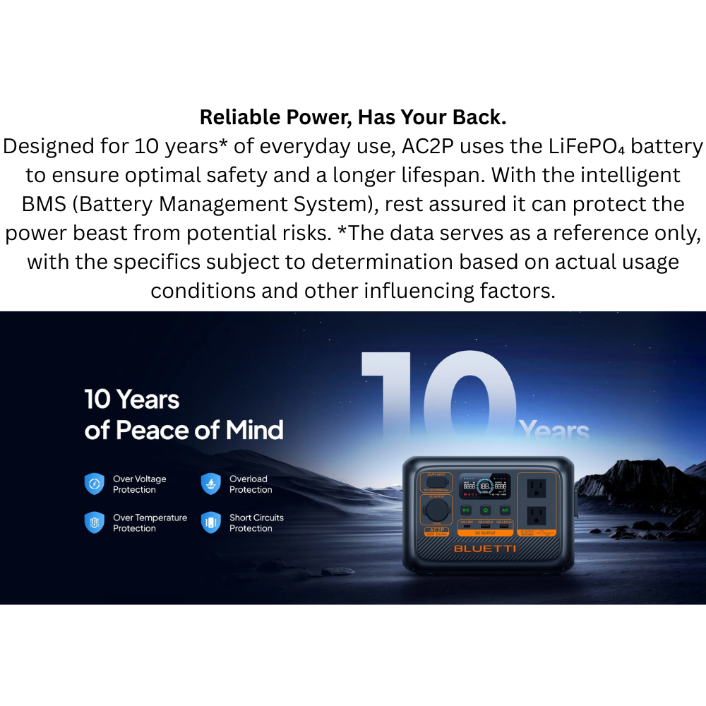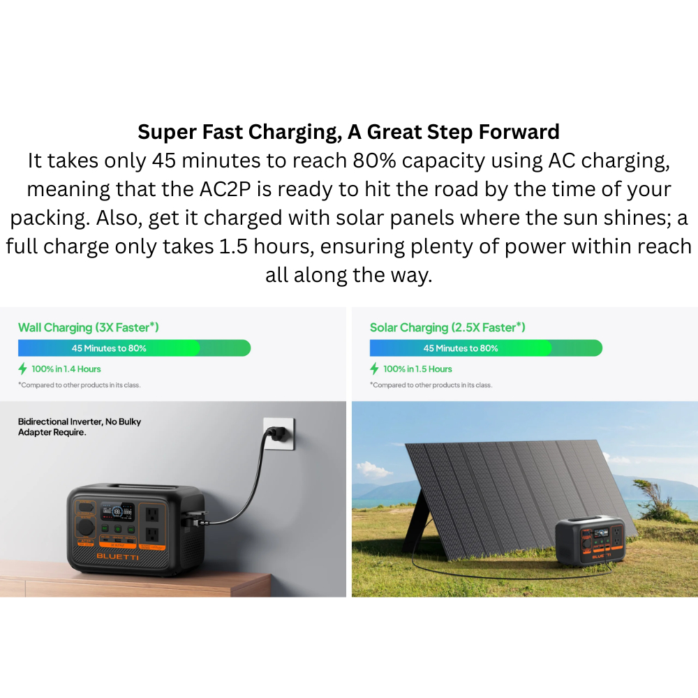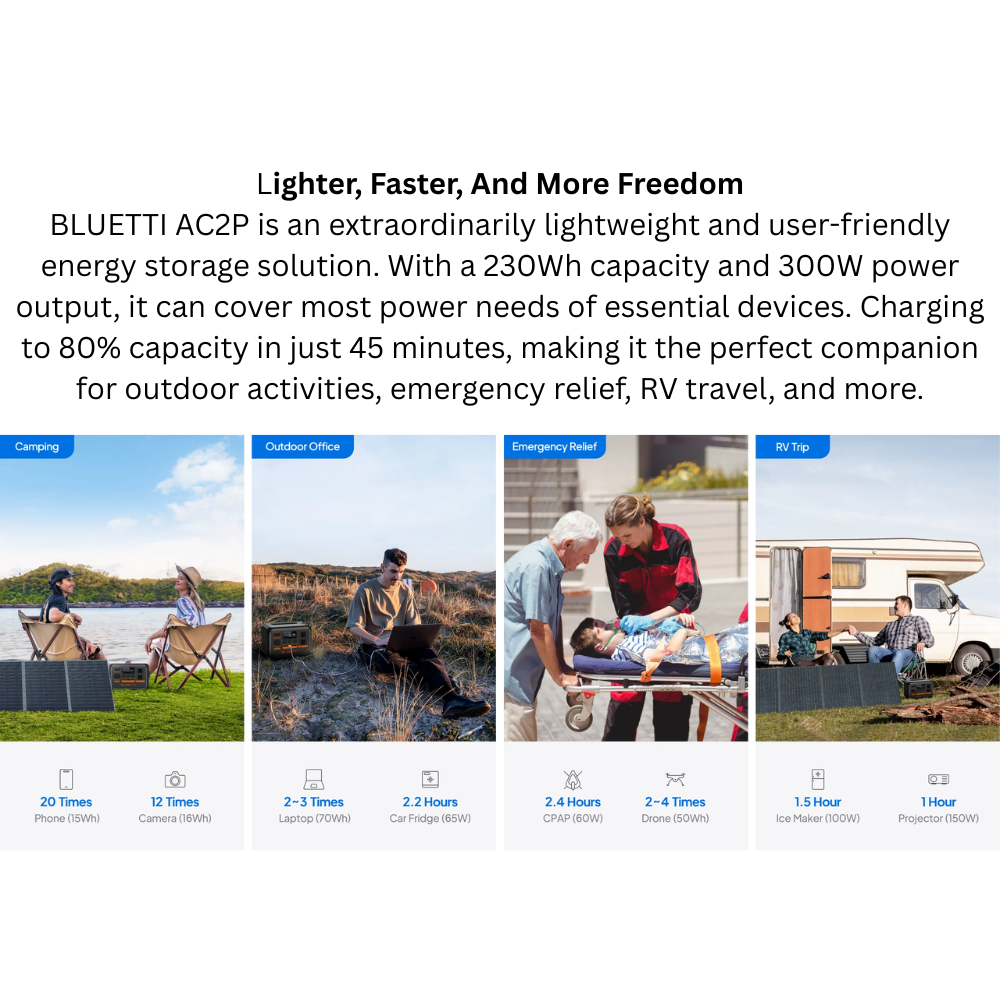 BLUETTI AC2P 300W Power Station | 230Wh LiFePO₄ Battery | Fast Charge | Travel, Backup | 5Y Warranty