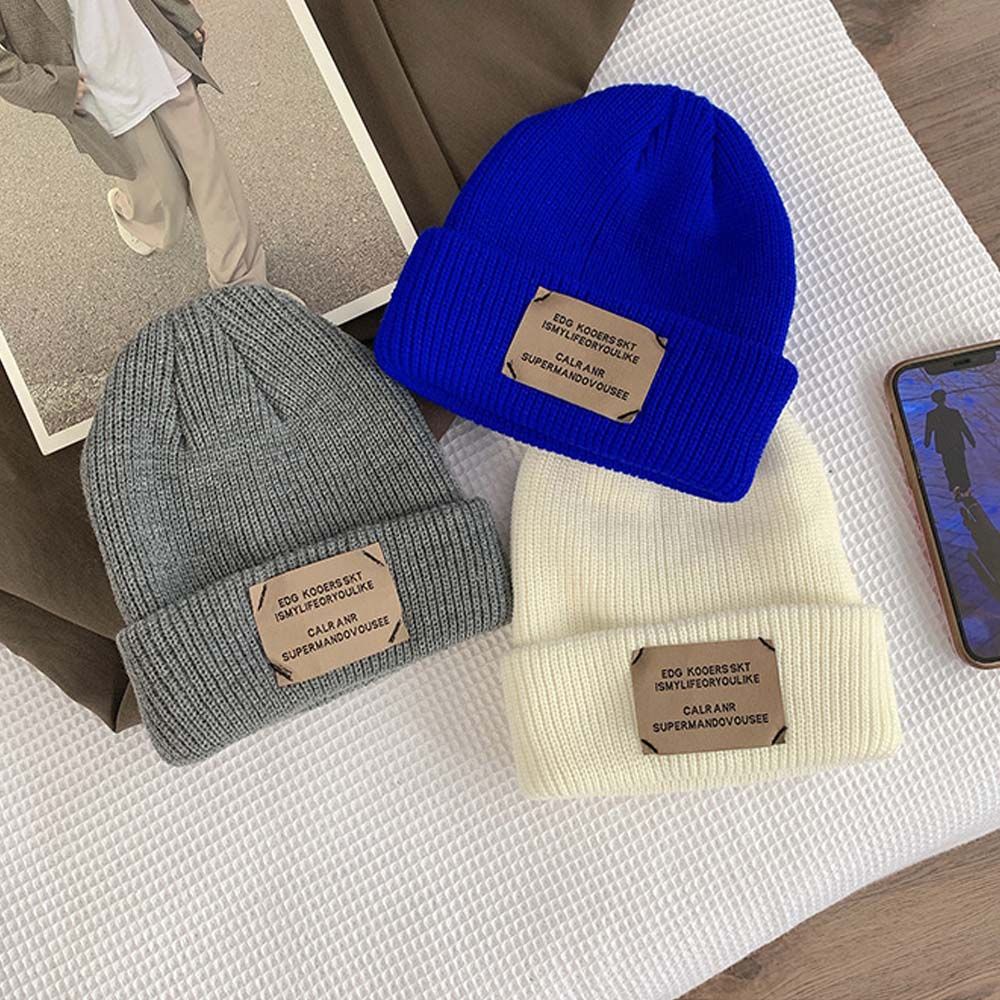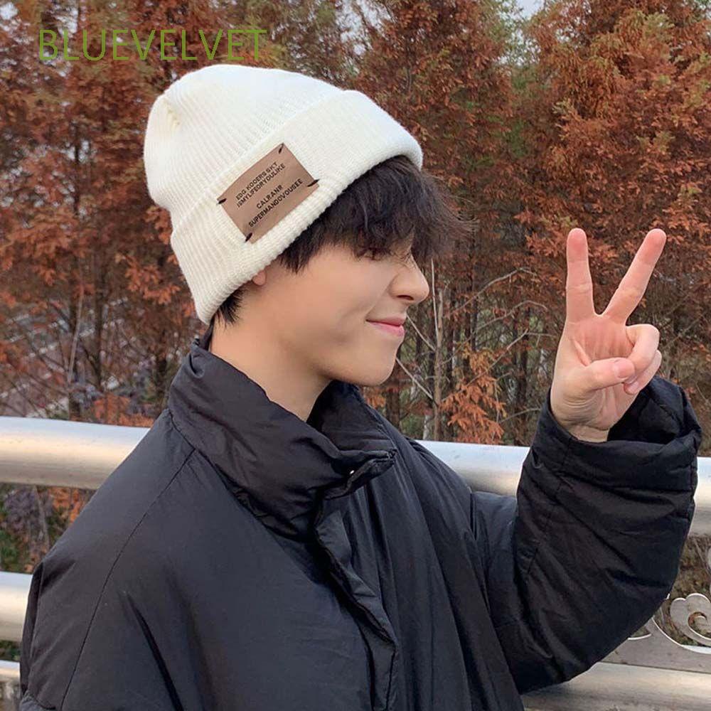 BLUEVELVET Korean Versatile Candy Color High Density Knit Hat Warm Wool Cold Hats for Men and Women in Autumn and Winter