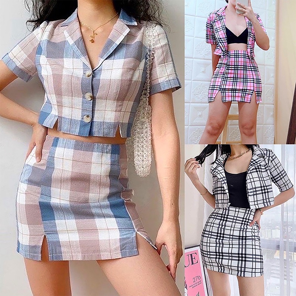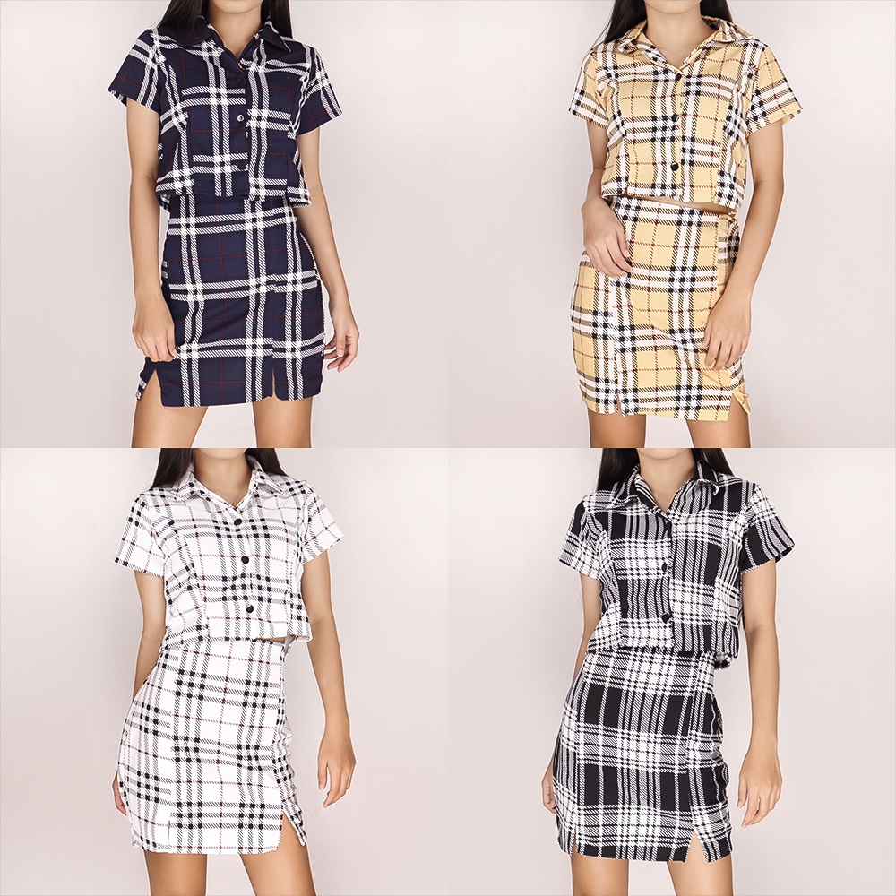 BM Coordinates Checkered Polo Crop Top and Skirt Set