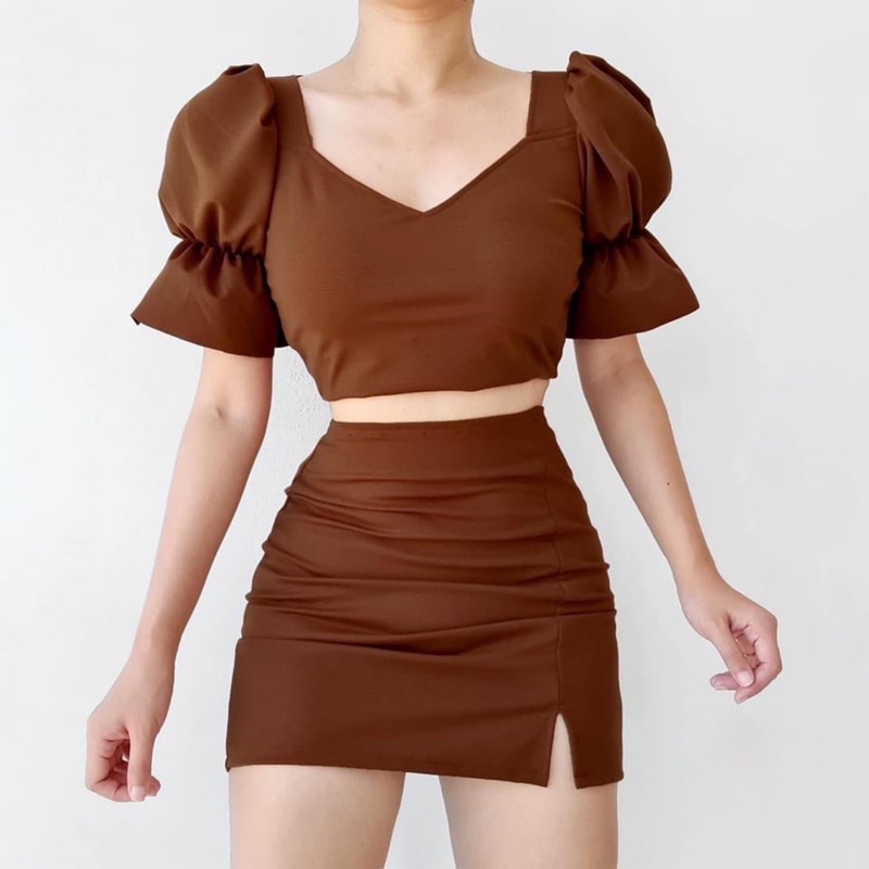 BM LULU Puff Sleeve Tops Coordinate Set Croptop and Skirt Terno wts029