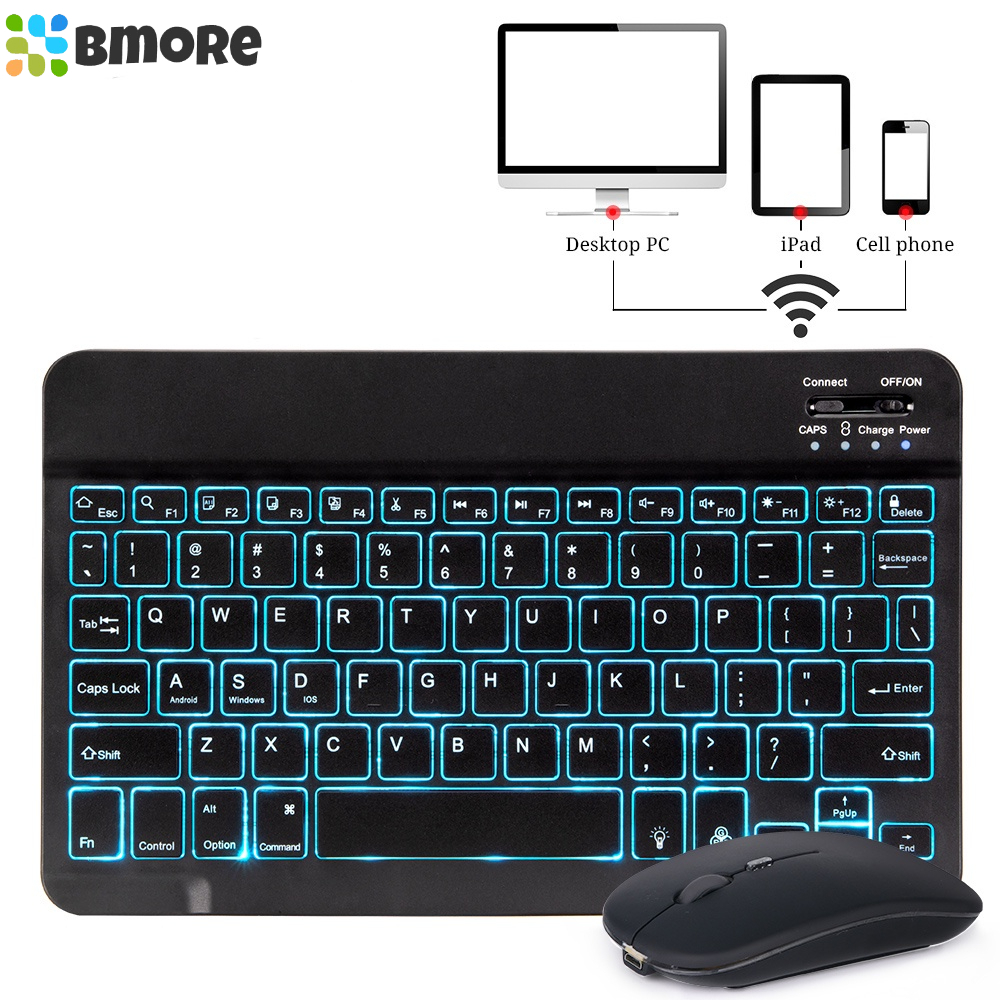 Bmore Goojodoq Backlit Wireless Bluetooth Keyboard And Mouse With Light Led For Pad Laptop Android Tablet