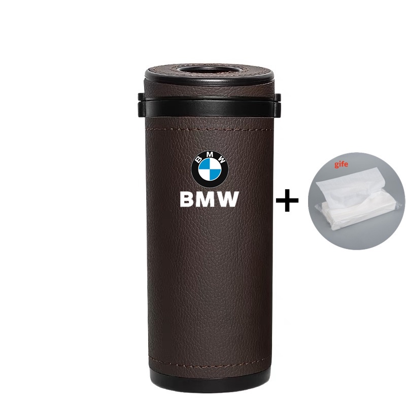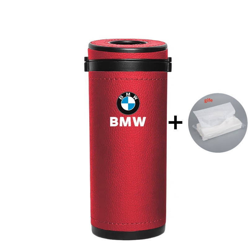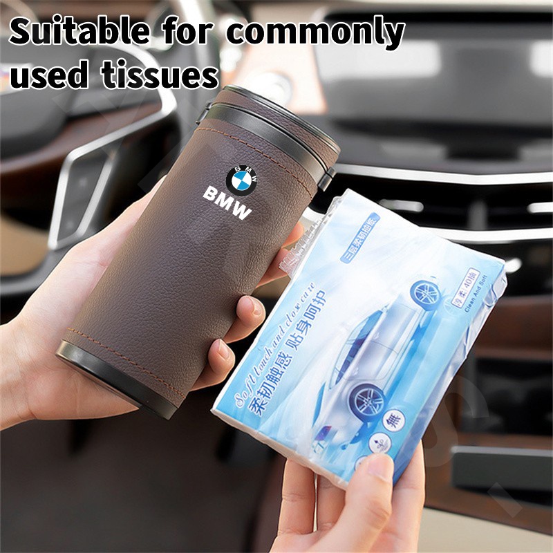BMW Car Leather Round Tissue Box Cylinder Paper Towel Storage Holder For BMW M E46 E36 F10 F30 E90 X3 F25 X5 E53 IX3 Z4 IX X4 X6 Accessories