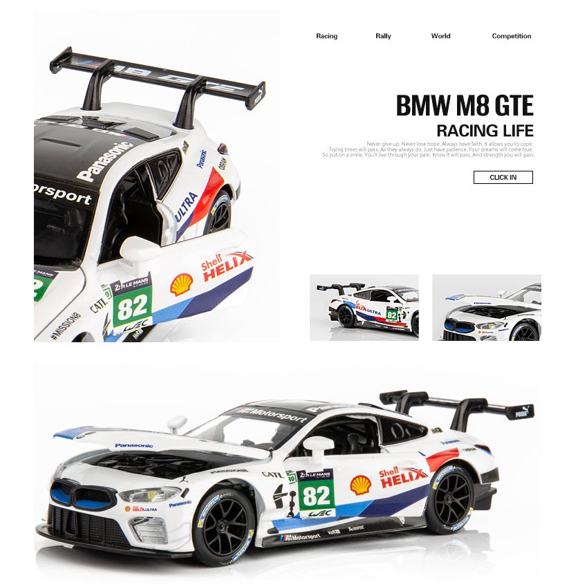BMW M8 GTE 82 DTM 1:32 Racing DIECAST Vehicle Sound Light Pull Back Car Model Metal Toy Miniauto