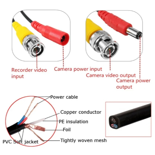 BNC Video Power Siamese Cable Security Camera Wire Cord Surveillance CCTV Camera System