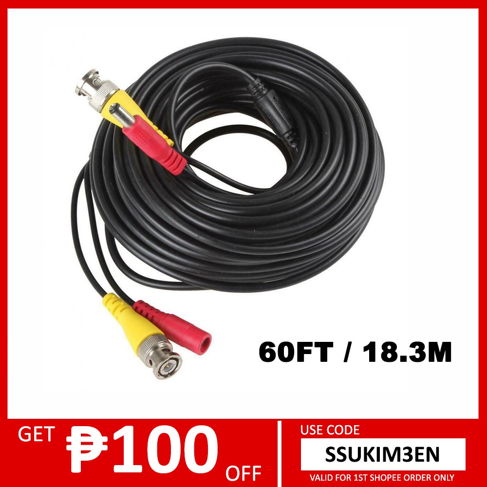 BNC Video Power Siamese Cable for Surveillance CCTV 60FT / 18.3M