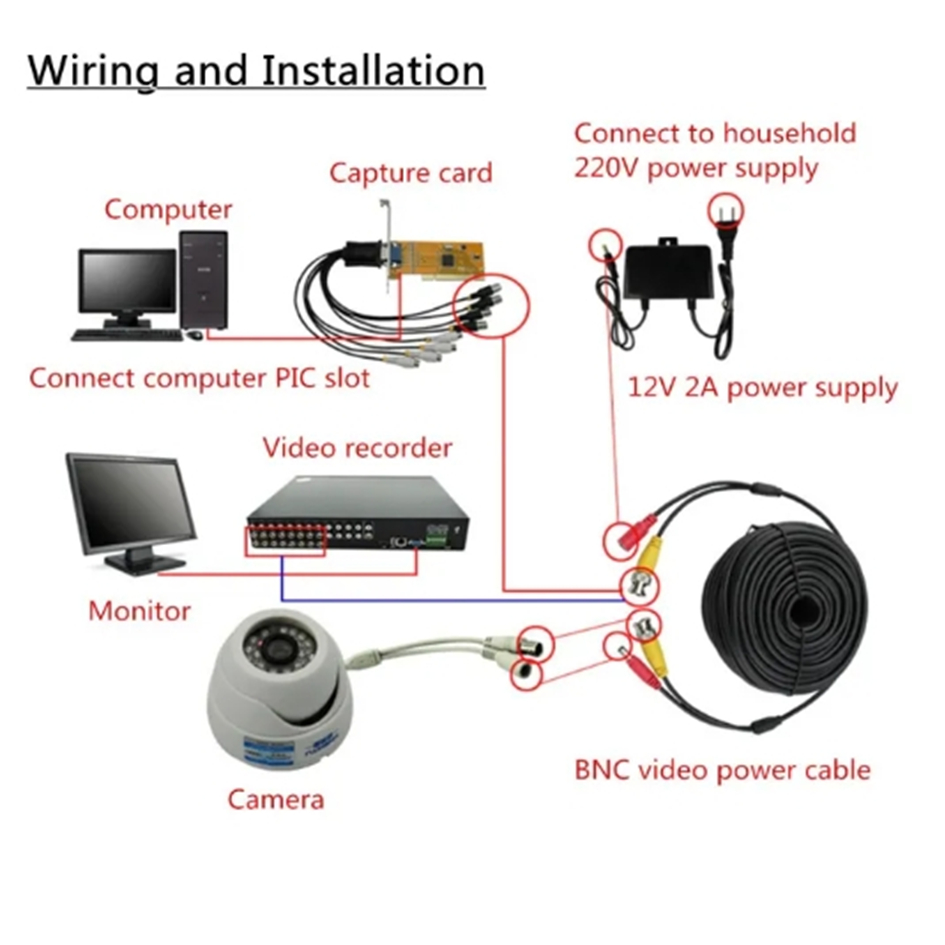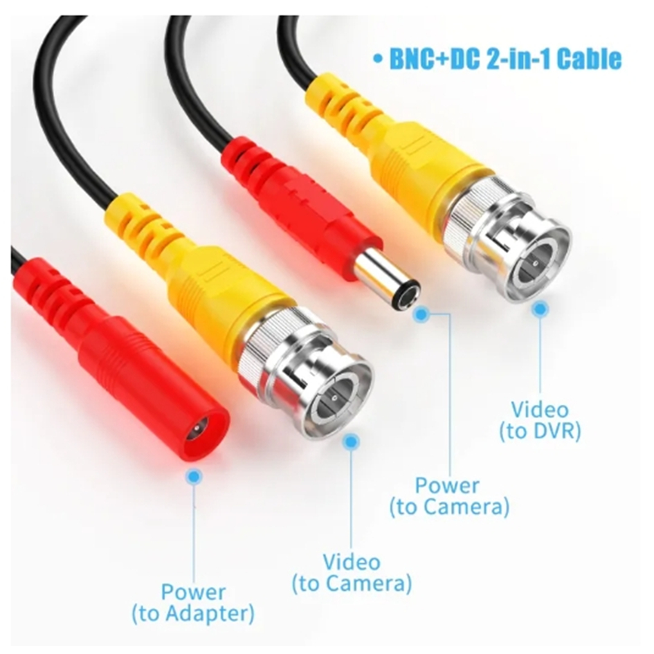 BNC Video and Power Siamese Cable Wire, Plug Connector for CCTV Security Camera Installation