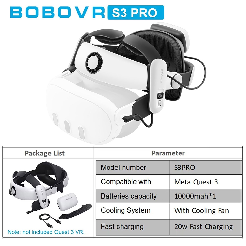 BOBOVR Head Strap Suitable for Meta Quest 3 M3 Max S3 Pro Super Strap with 10000mAh Battery M3 Series Head Strap VR Accessories