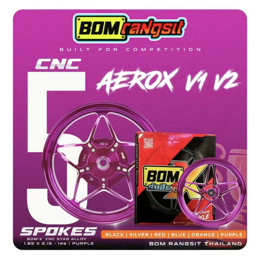 BOM RANGSIT MAGS CNC AEROX V1/V2 STAR MAGS x14-5 SPOKES MOTORCYCLE PARTS 100% ORIGINAL
