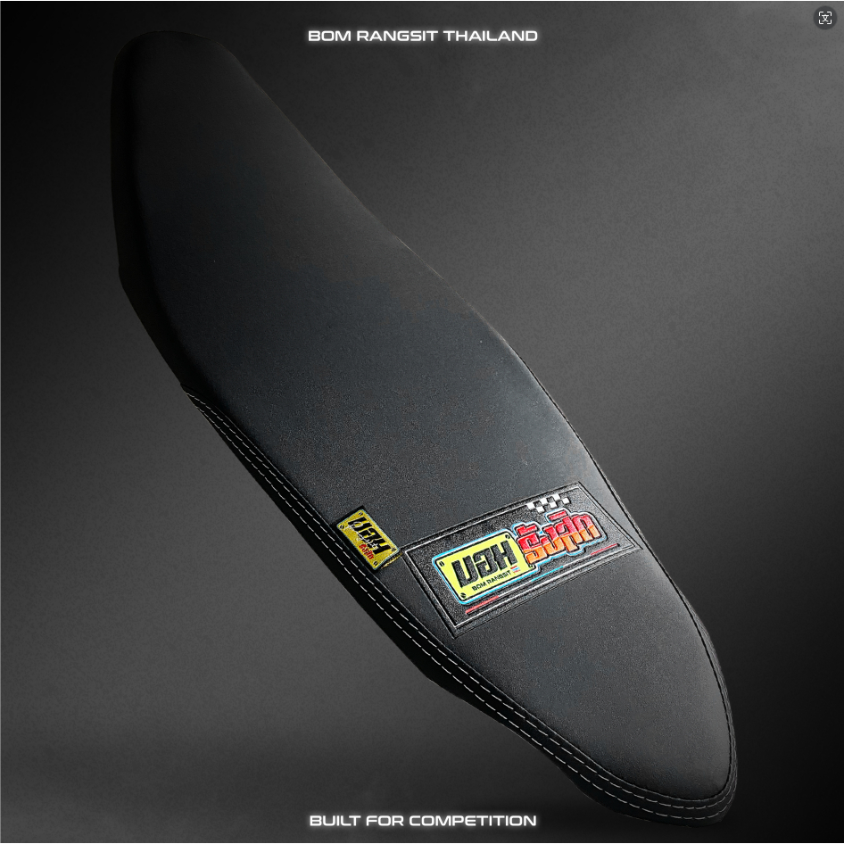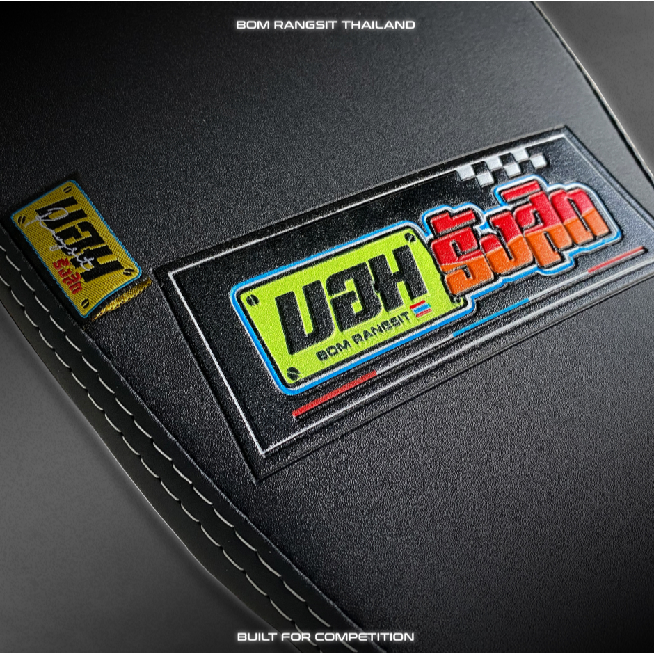 BOM RANGSIT Premium Leather Flat Seat Cover Durable Foam Padding Non-fading Logo