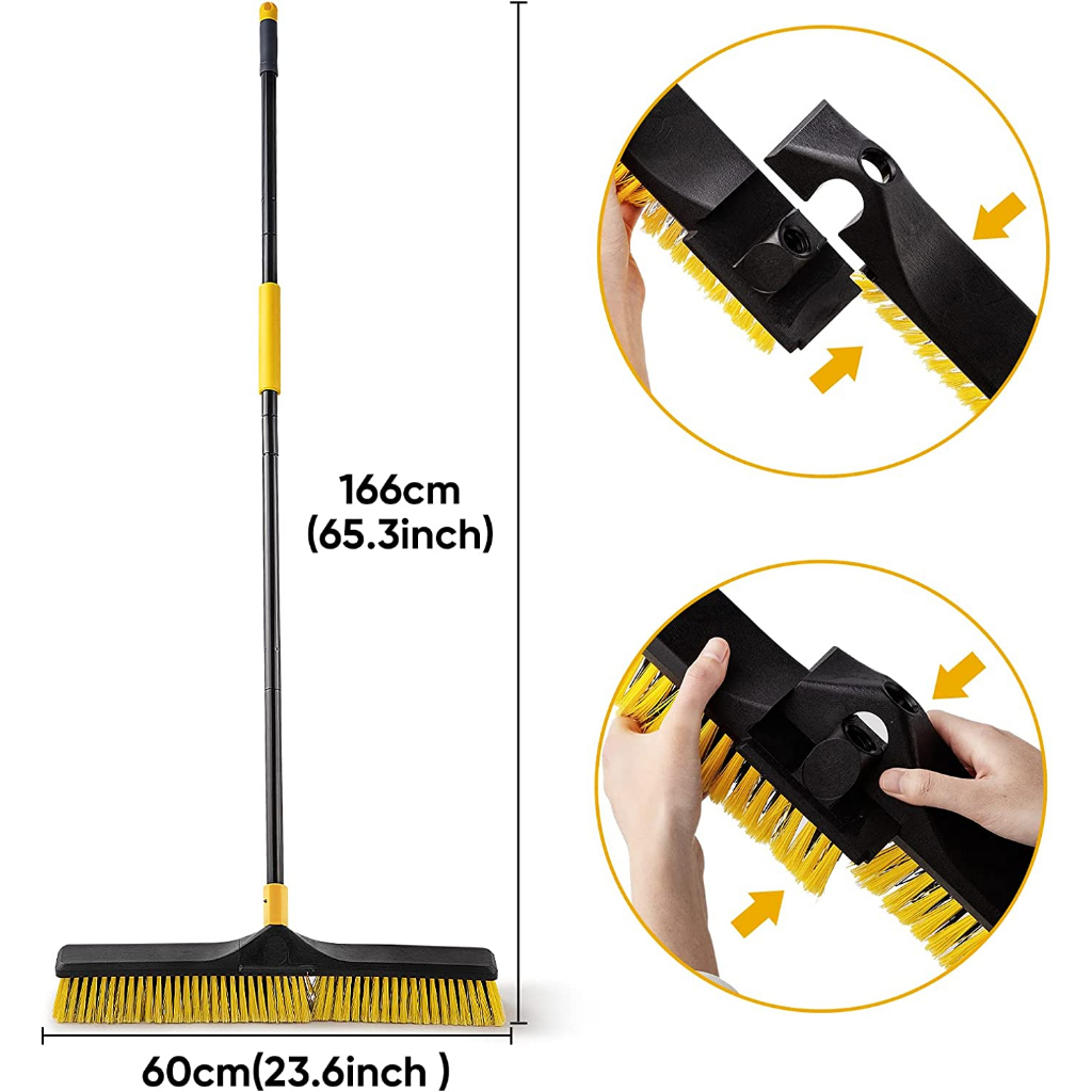 BOOMJOY Push Broom Brush Long Handle Stiff Bristles Heavy-Duty Outdoor Commercial for Cleaning Bathroom Kitchen Patio Garage Deck Concrete Wood Stone Tile Floor