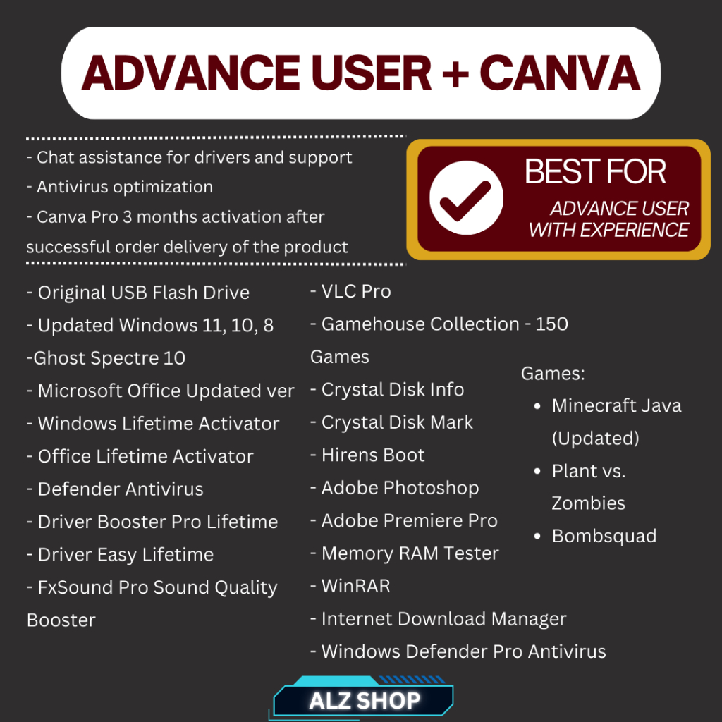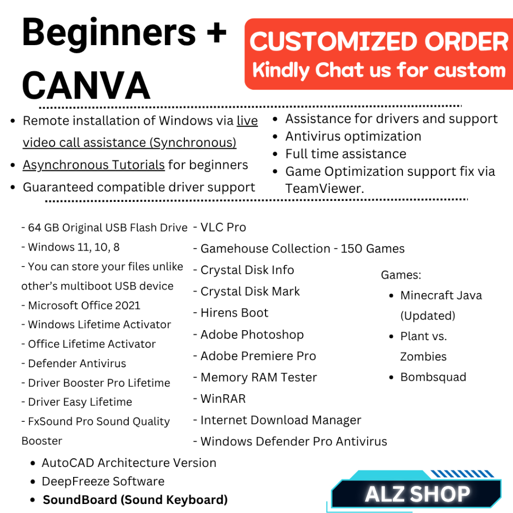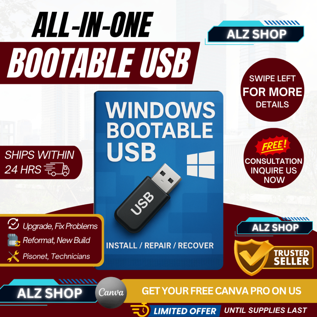 BOOTABLE USB HIGH QUALITY - REFORMAT, REINSTALL, DIY FIX, W10 W11 32 64 GB ALZSHOP PROGRAMMING USB