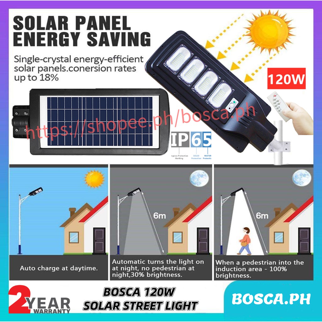 BOSCA 120W 2 Year Warranty Outdoor Solar Induction Integrated Street LED Light With Remote S2