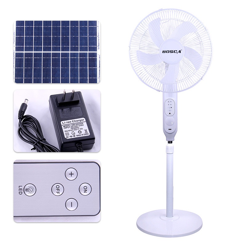 BOSCA 16" Solar Rechargeable Fan 25w Stand Floor Panel 20w With Remote Control