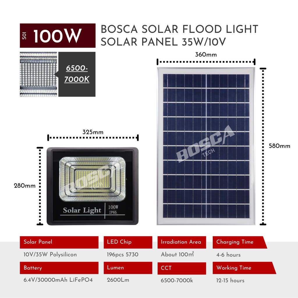 BOSCA 5 years WARRANTY 100W SOLAR LED OUTDOOR FLOOD LIGHT street lamp with solar panel