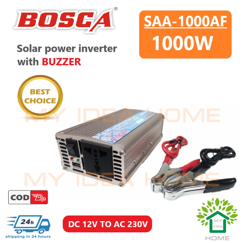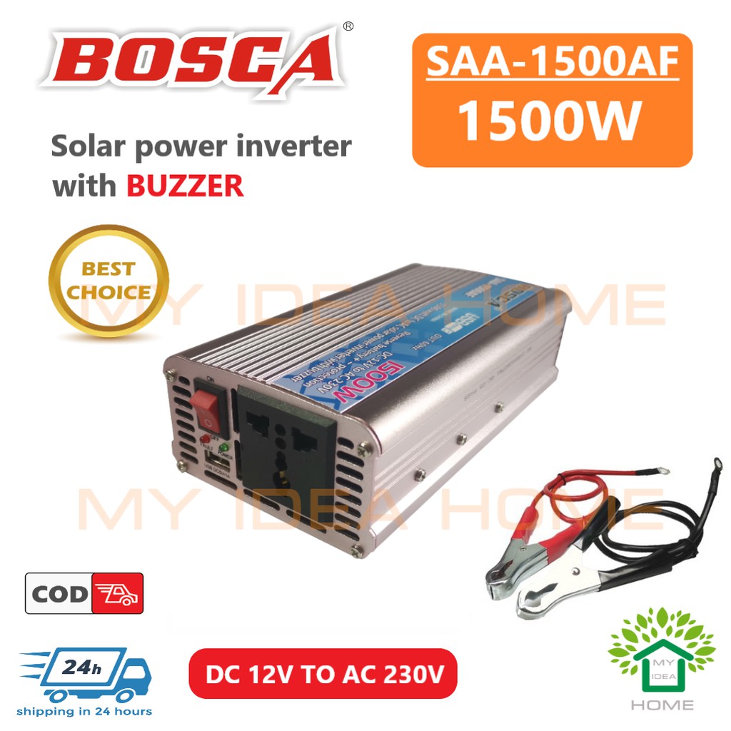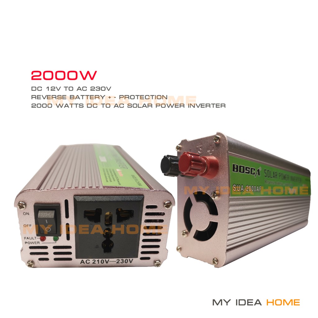 BOSCA Inverter 500w 1000w 1500W 2000W DC12V To AC 220-230V Car home Solar Power Inverter COD