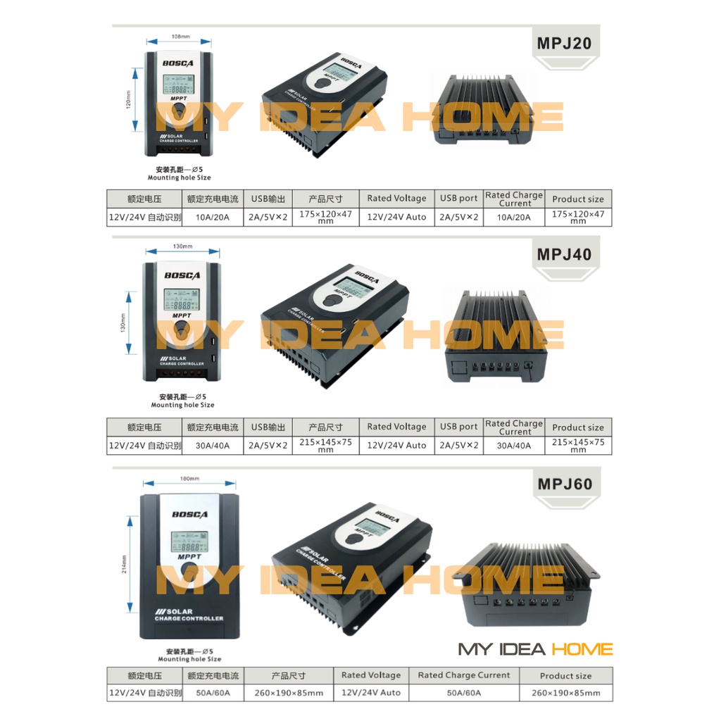 BOSCA MPPT 12V/24 AUTO Solar Charge Controller For Solar PV Power System 30A/40A/60A COD