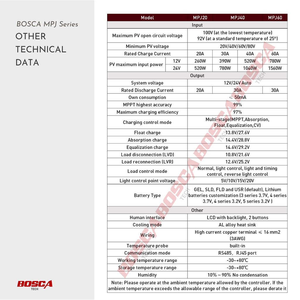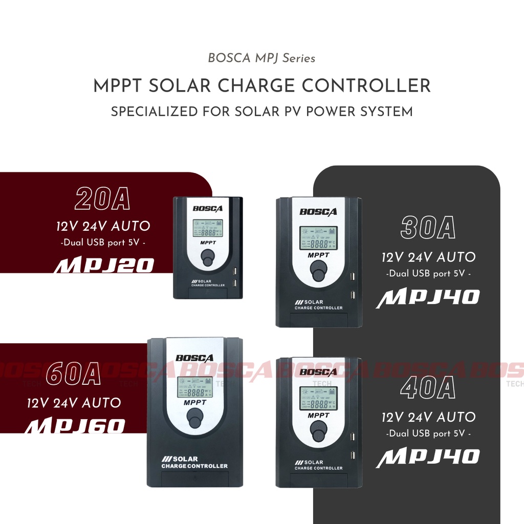 BOSCA Solar Charge Controller MPPT 12v 24v AUTO 60A MPJ60 Specialized for solar PV power system