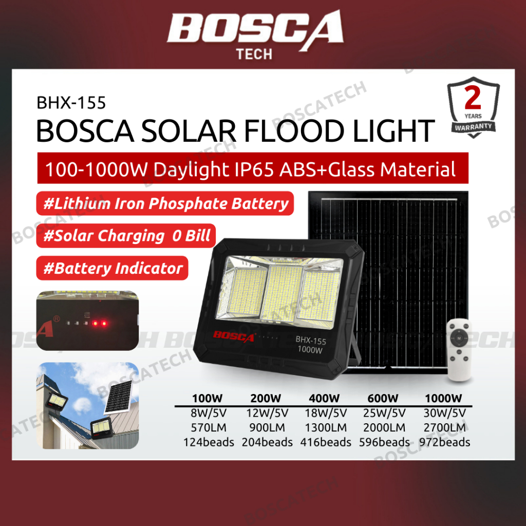BOSCA Solar Flood Light 100W 200W 400W 600W 1000W IP65 Battery Indicator Remote Control BHX-155