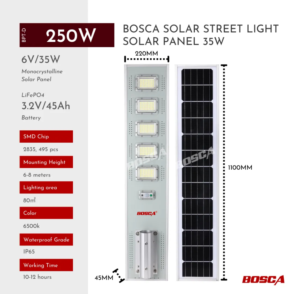 BOSCA Solar Street Light 250W Aluminum Alloy Integrated Super Bright LED Solar Light Outdoor Light