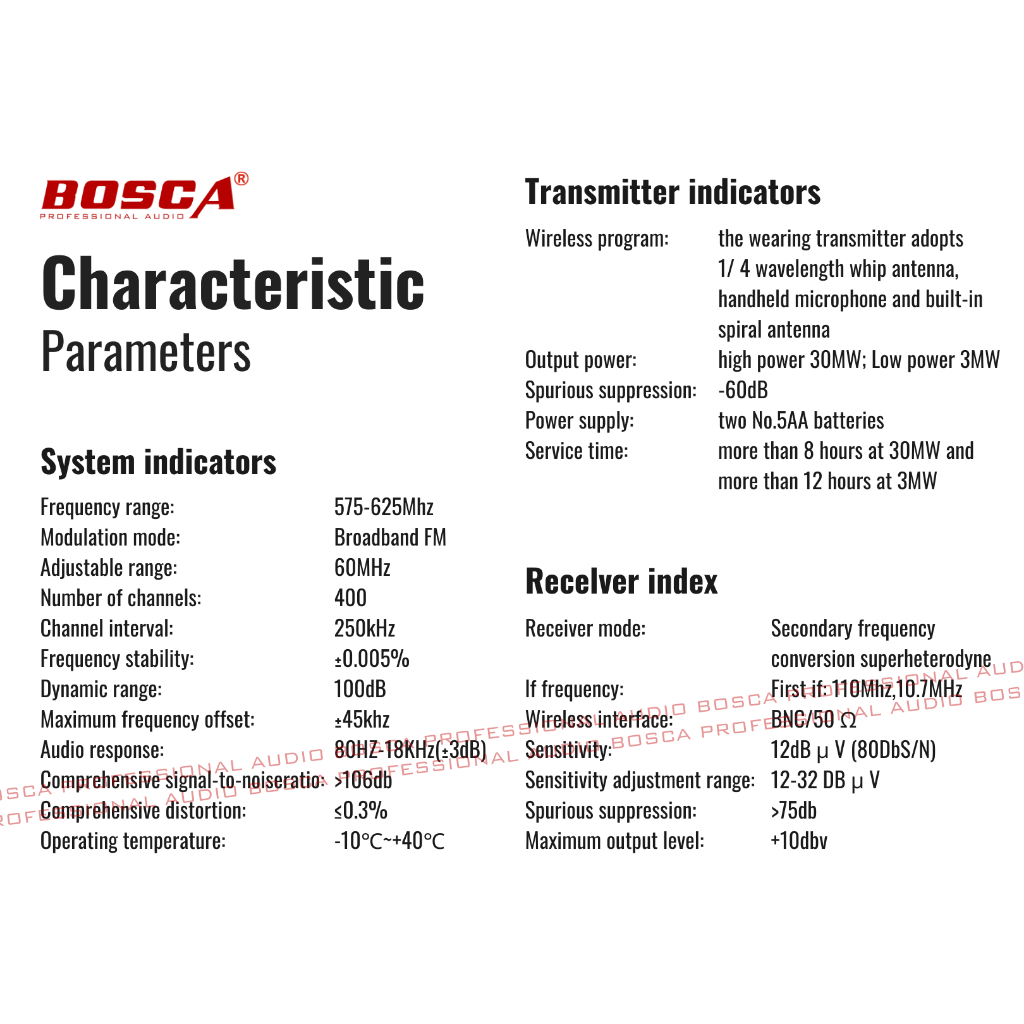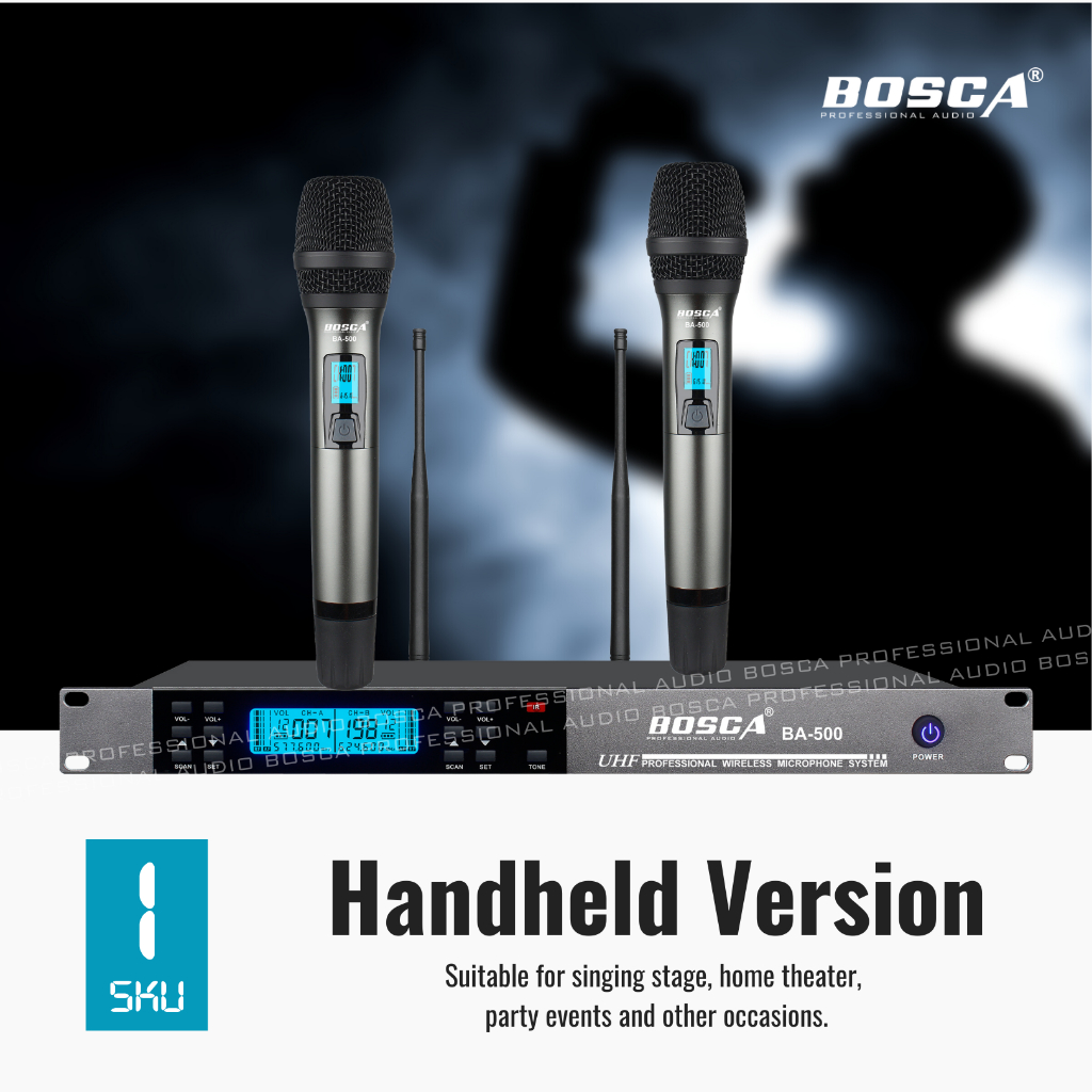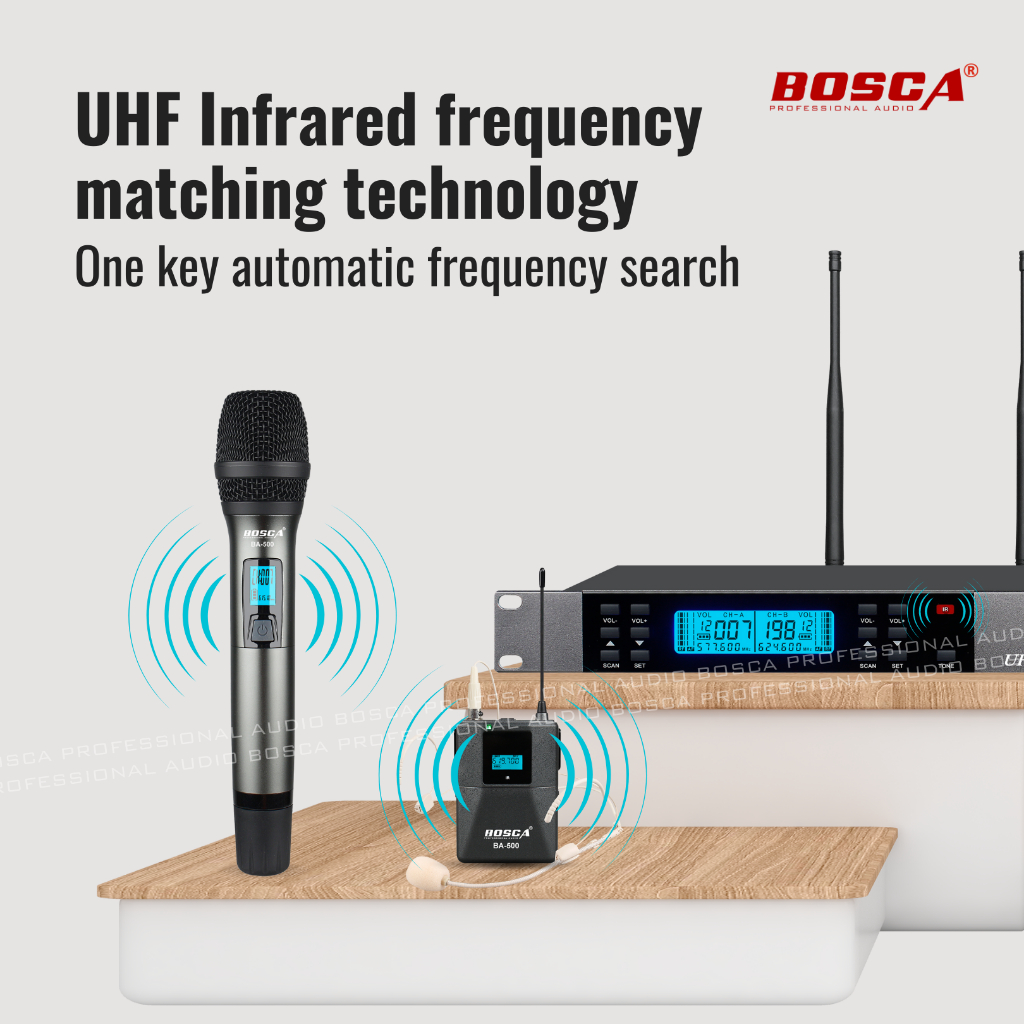 BOSCA UHF Professional Wireless Microphone System BA-500 Headset Microphone Handheld Microphone