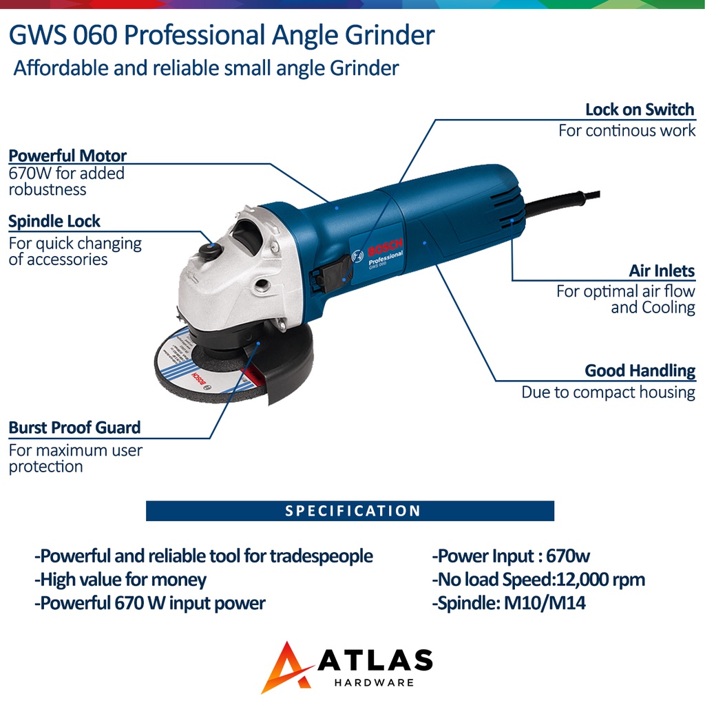 BOSCH GWS 060 Angle Grinder 670W COC