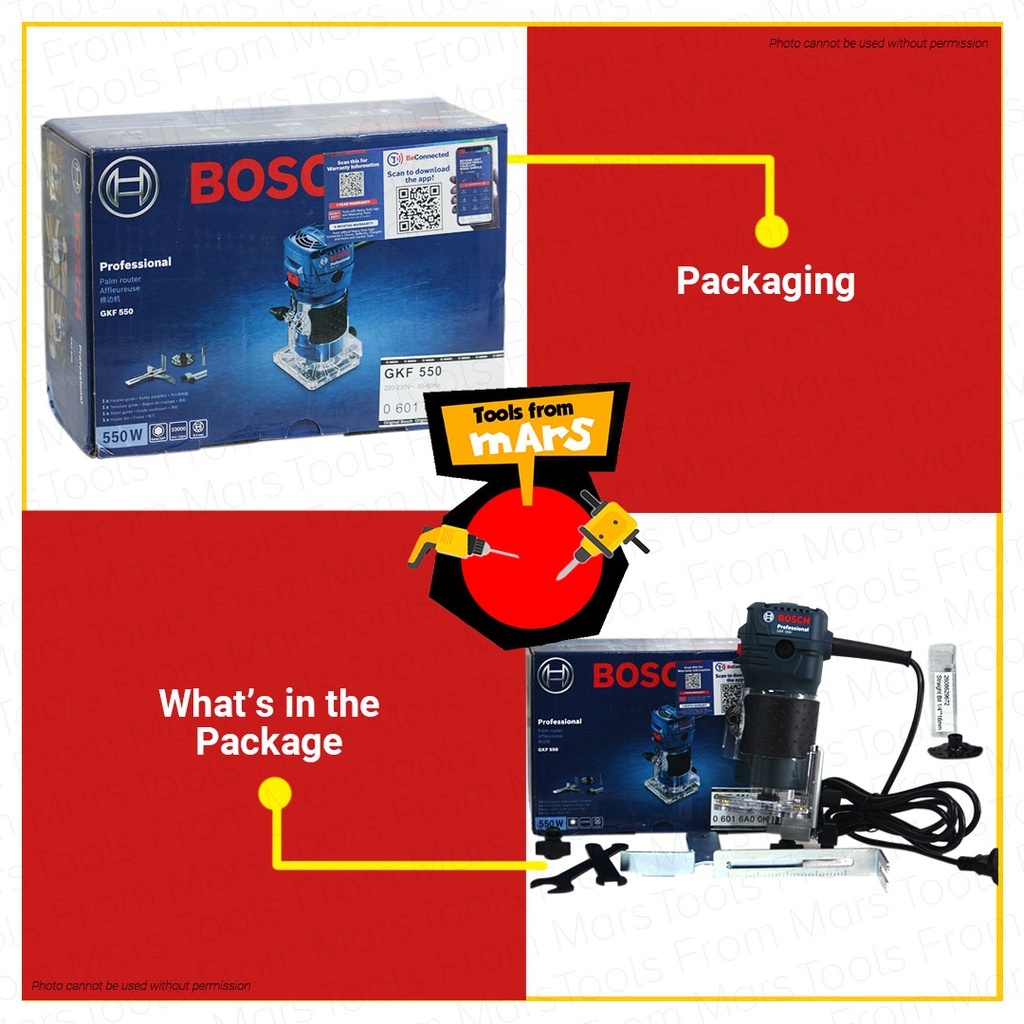 BOSCH Professional Palm Router / Trimmer 550W COC GKF 550 with 1 STRAIGHT BIT -TFM